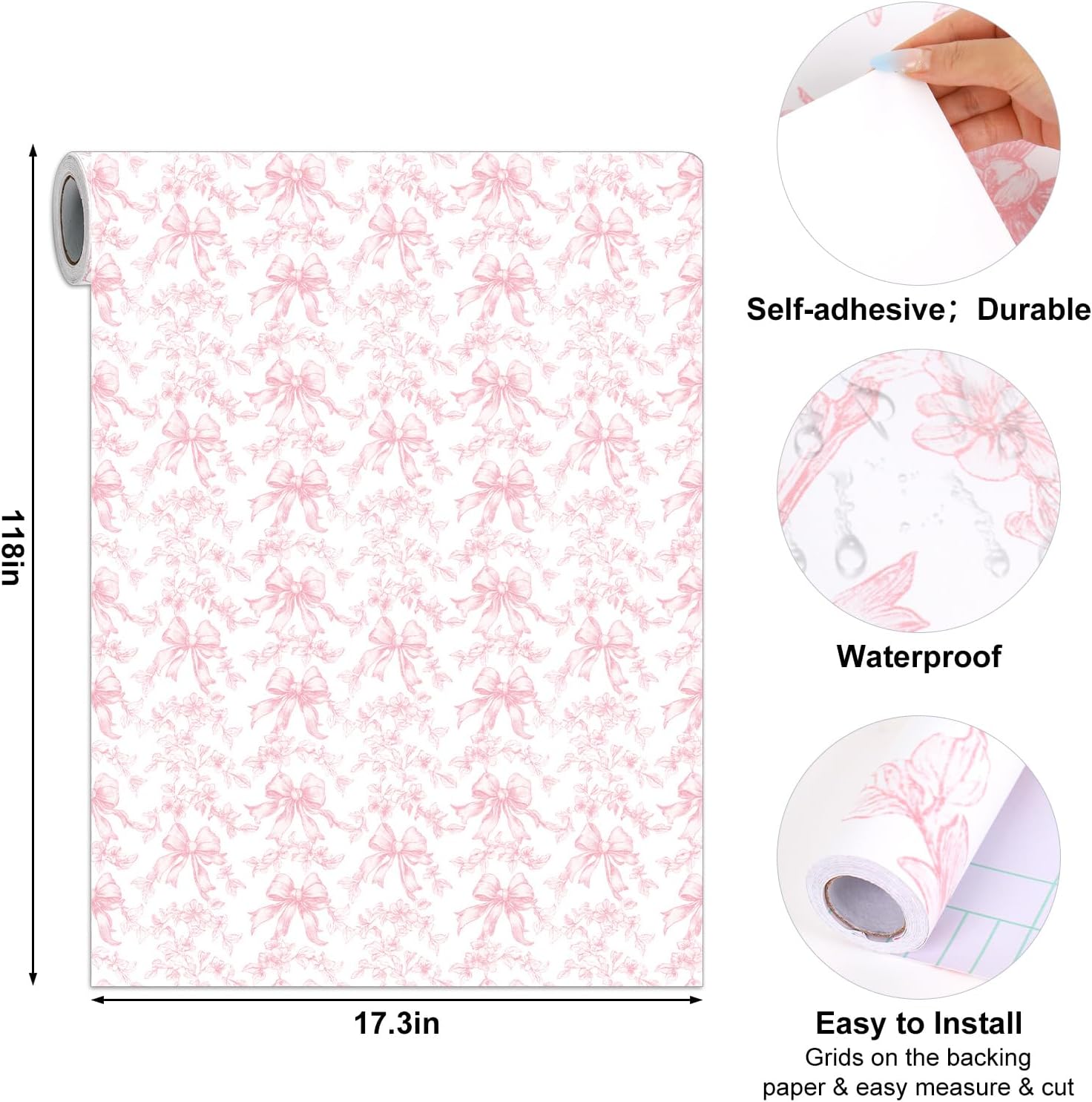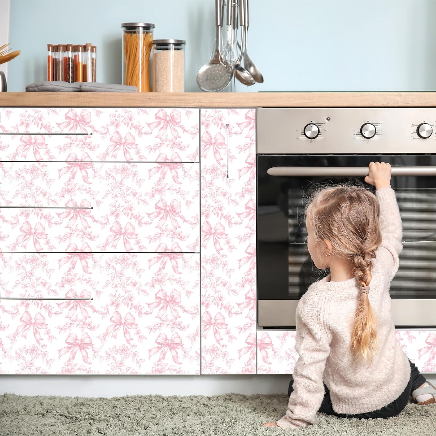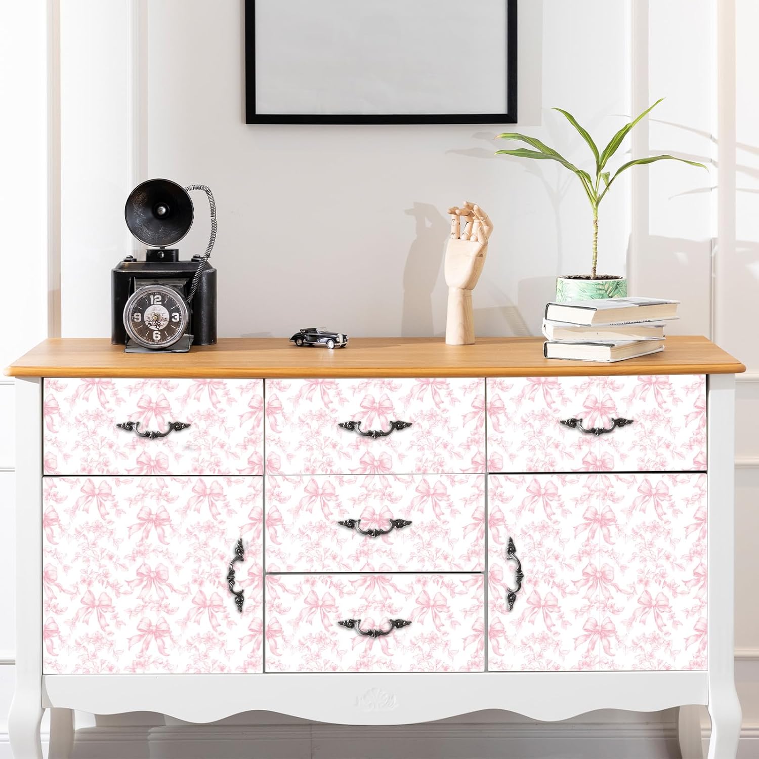 BOW FLORAL DESIGN: Our shelf liner features a charming bow floral pattern, vintage and elegant, adding a touch of classic beauty to any space, enhancing the aesthetic appeal of your home