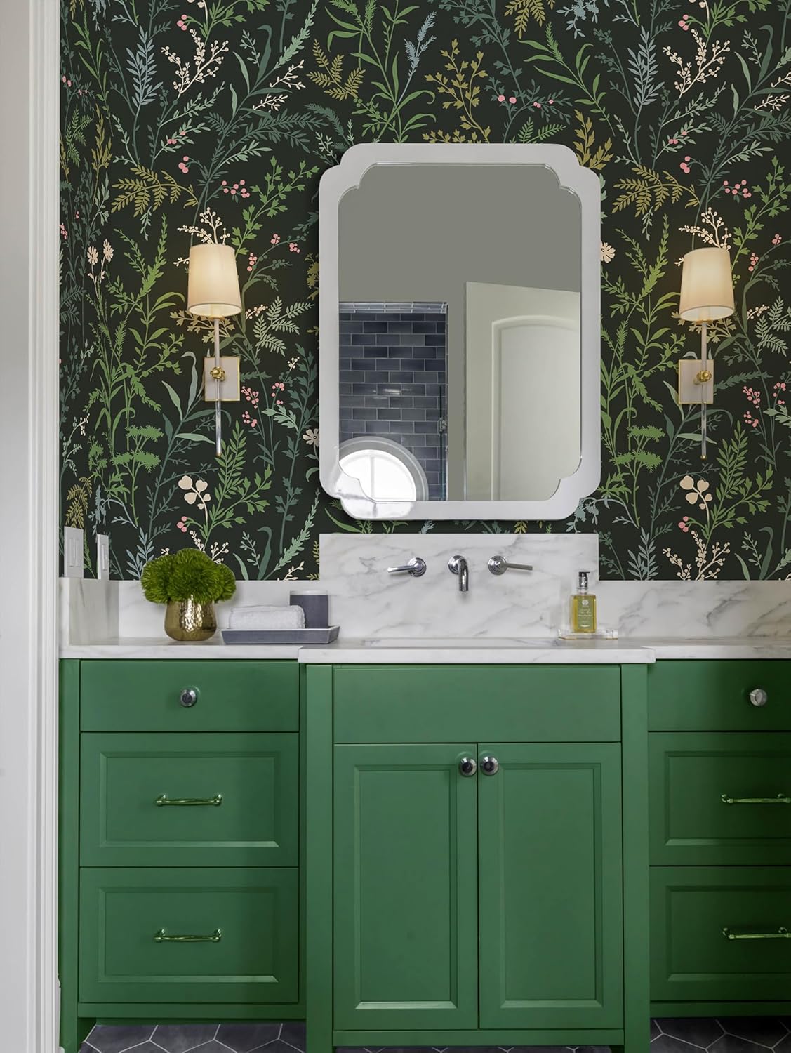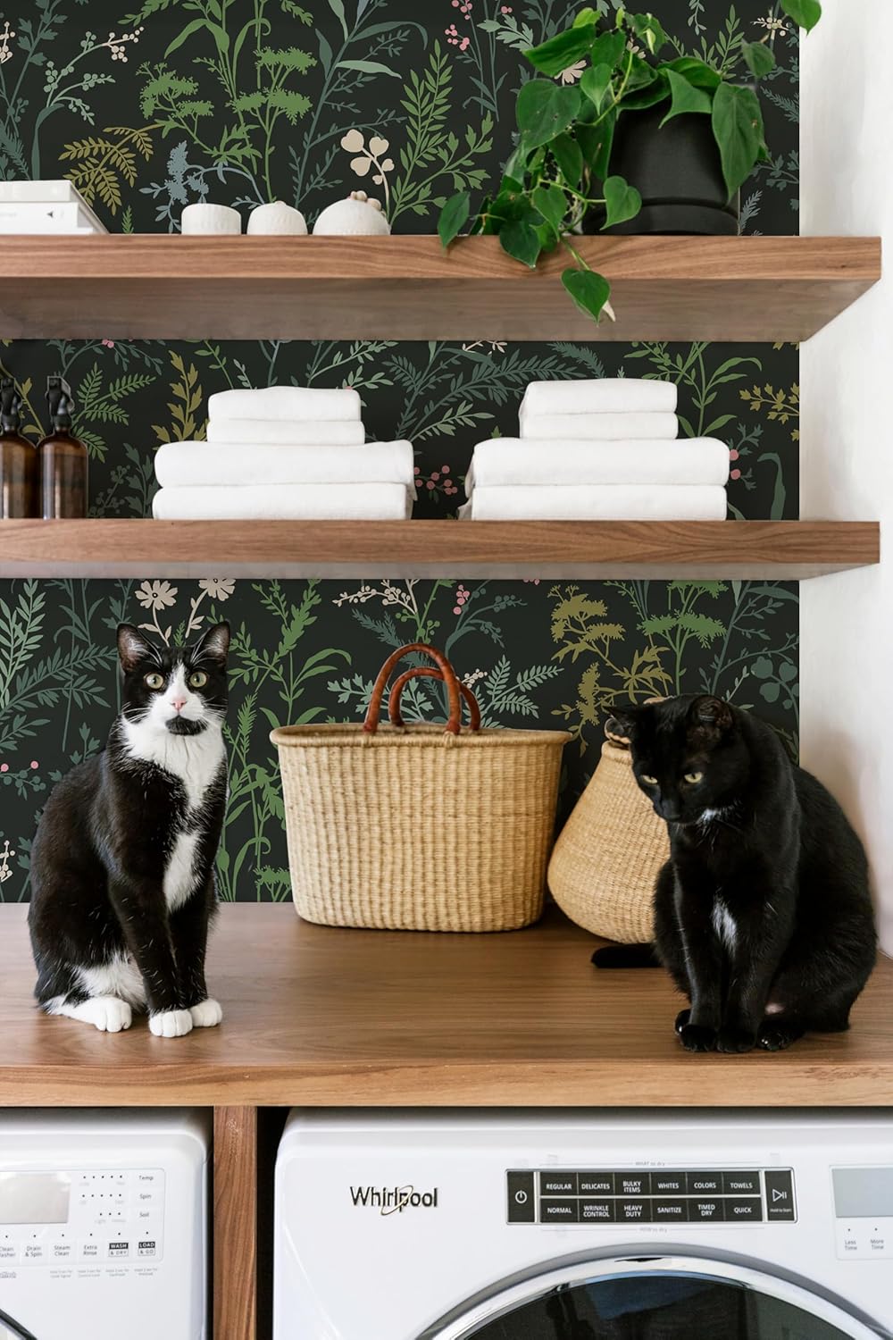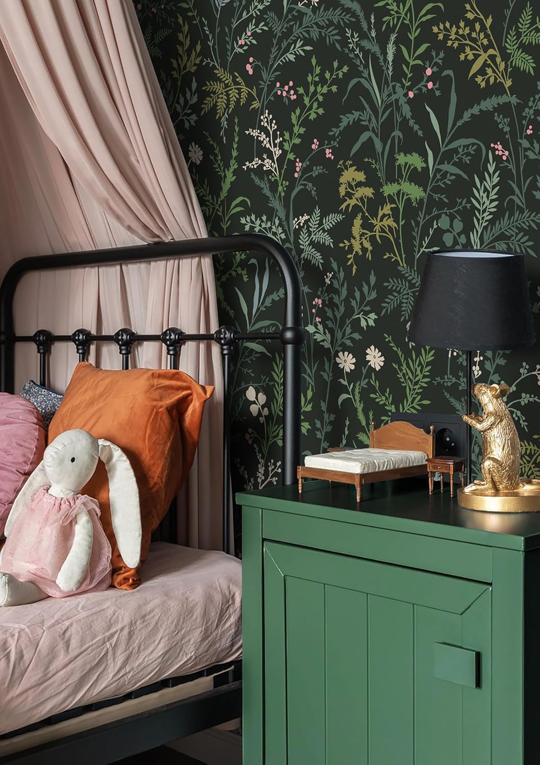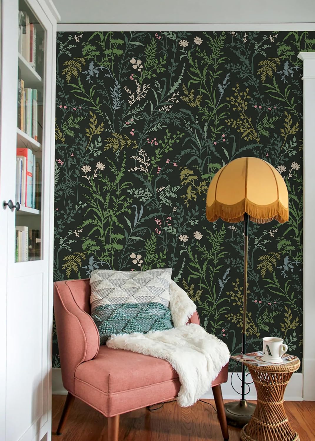 【Pattern Design】This wallpaper is inspired by natural plants, with a dark base and multiple colors blending to present the detailed silhouettes of plants and flowers. Create an elegant and fresh visual effect. The soft colors and rich patterns infuse the space with the atmosphere of nature and art.