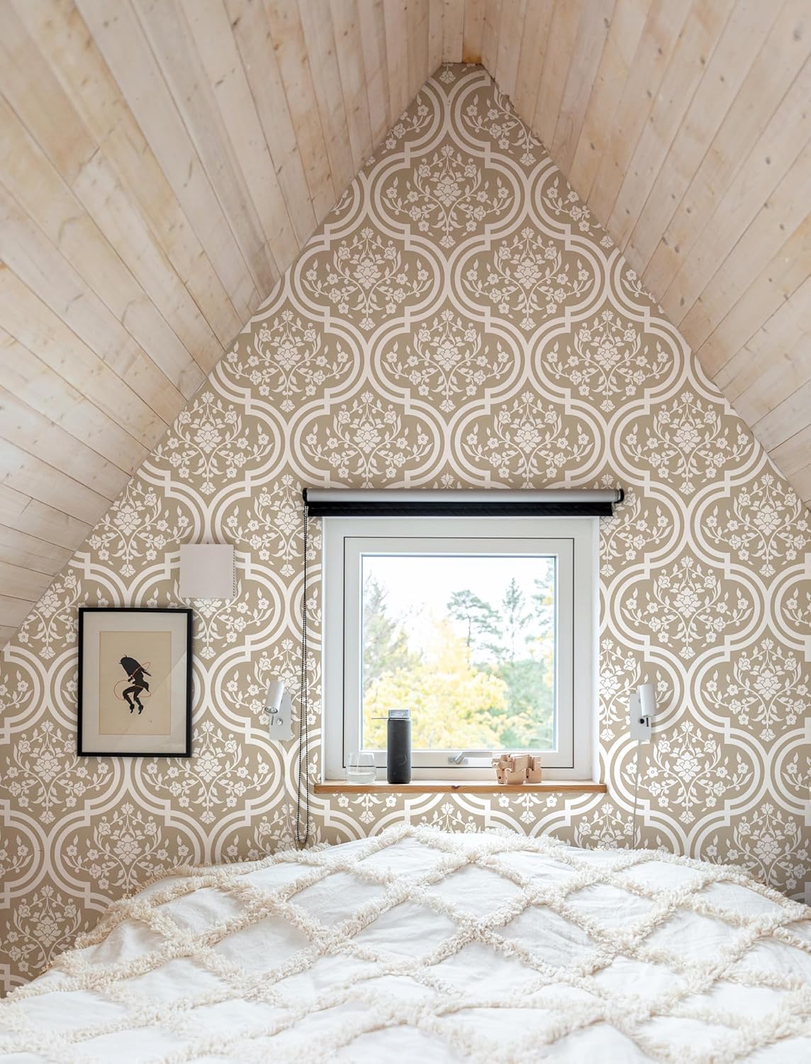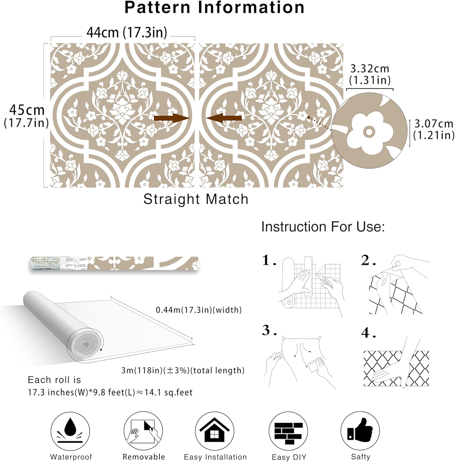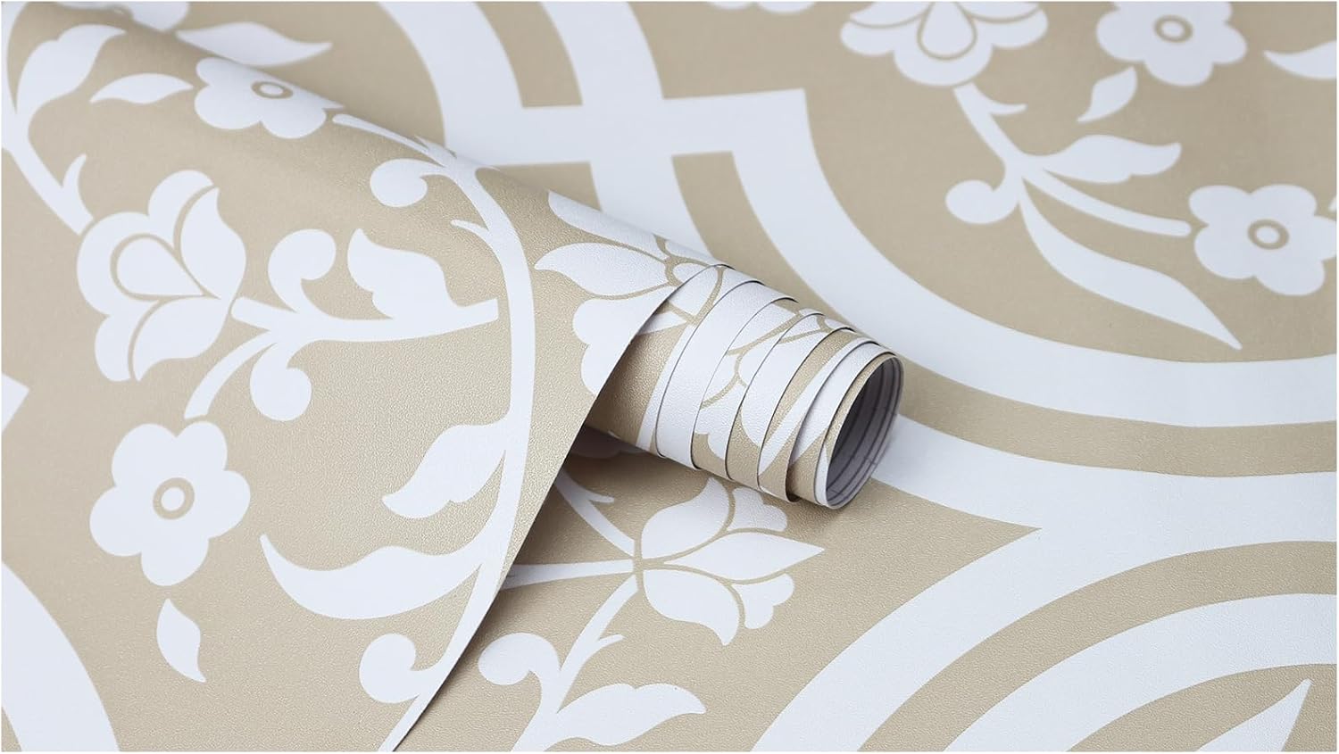 PATTERN & DESIGN: Pattern repeat is H17.7″ x W17.3″ (H45cm x W44cm), straight match. Firstly to find the correct pattern repeat and then just directly match without overlap, it’s very easy for beginner who never did peel and stick wallpaper before.This peel and stick wallpaper features a traditional and classic damask design with large flowers. The color combination of beige background and white pattern creates a vintage and boho look. It’s easy to apply and remove, perfect for adding a touch of elegance to your space.