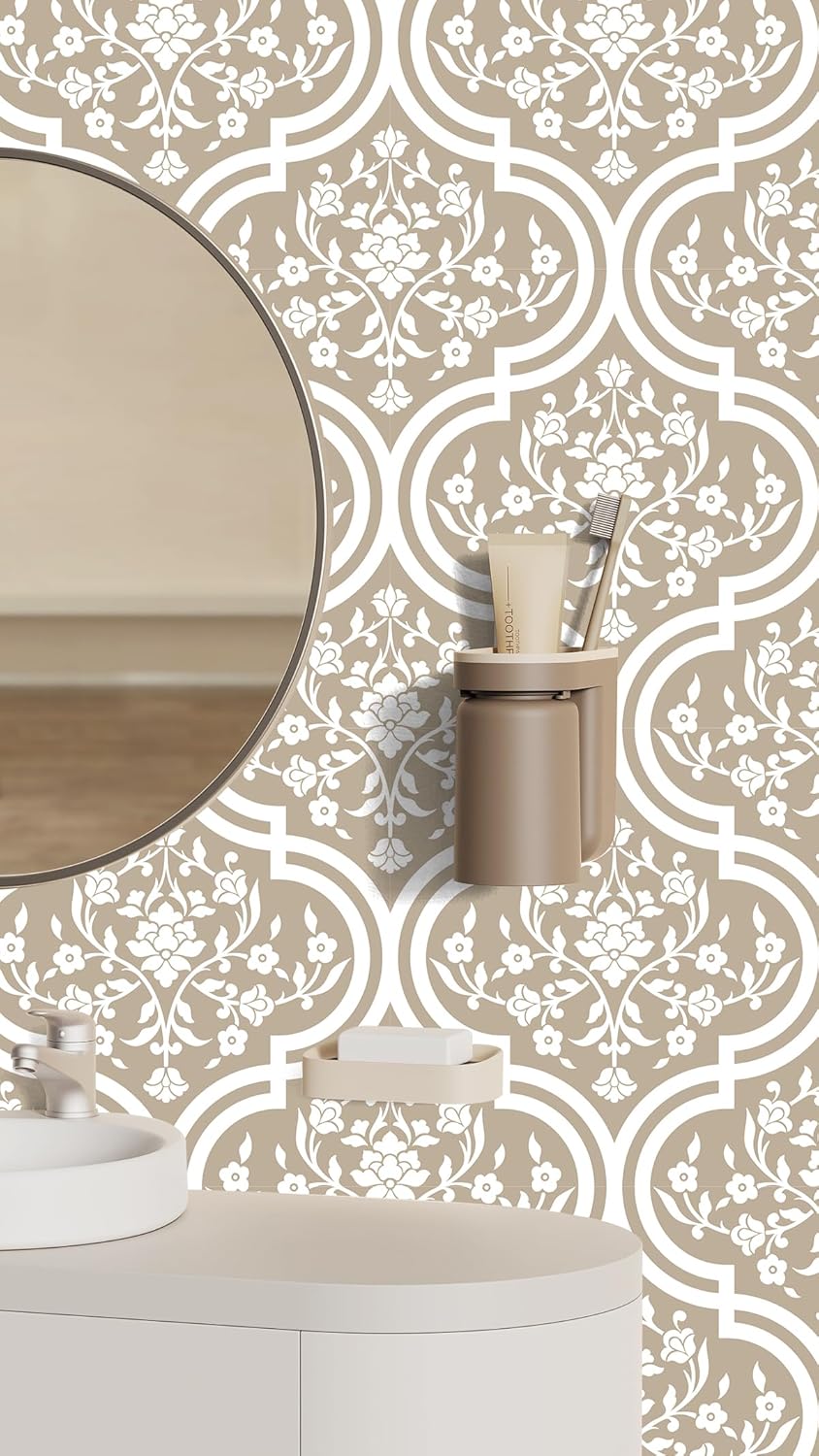 HAOKHOME Damask Wallpaper Peel and Stick Floral Wall Paper Vintage Removable for Kitchen Mushroom/White Contact Paper 17.3in x 9.8ft