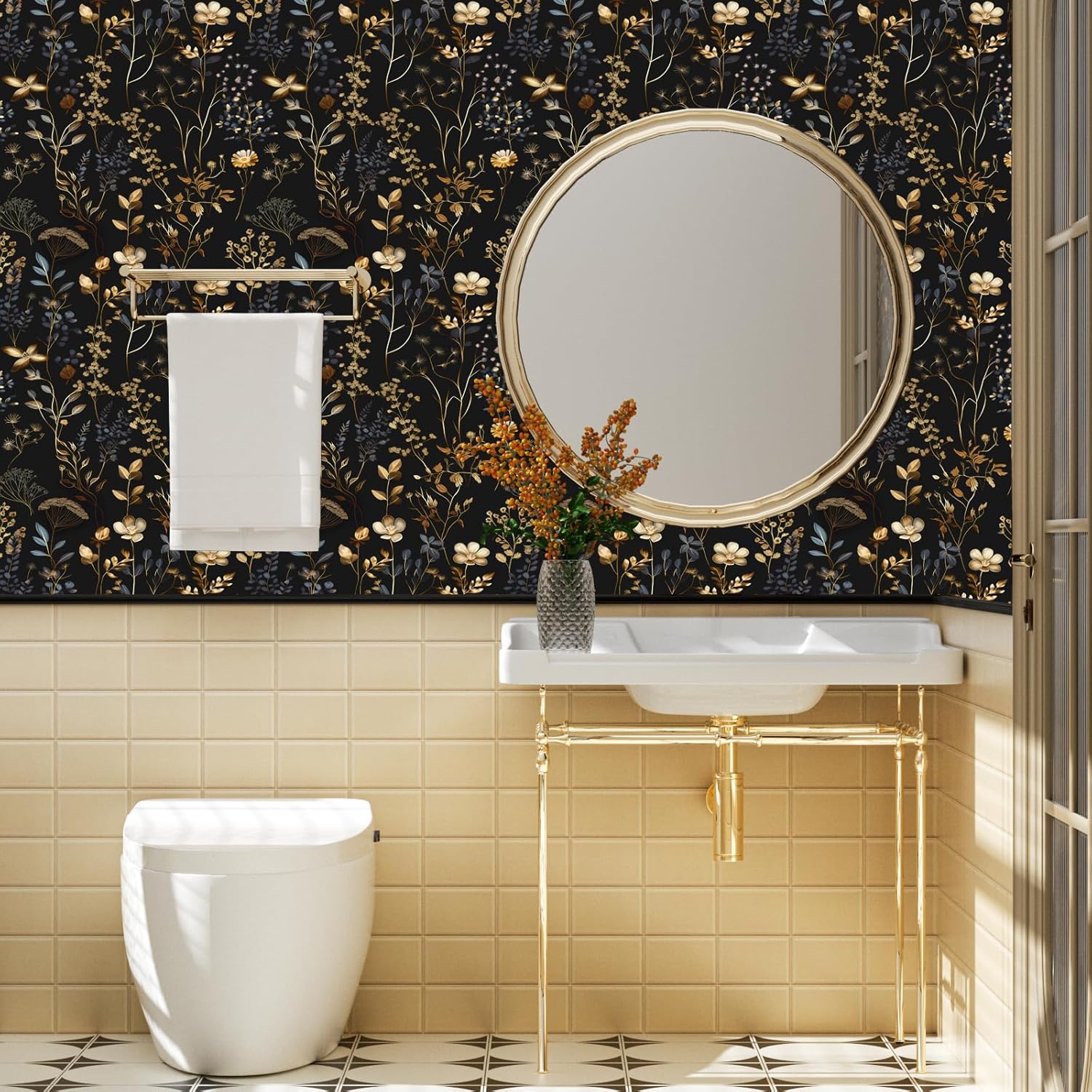 In the process of remodeling my bathroom. Need to do countertops still but this wallpaper was the exact wow factor I wanted. Love a rustic/cottage/botanical vibe and this brought my vision to life. I was a little hesitant to buy because of all the reviews about the product shrinking overnight, air bubbles the next day, scuffs easily, not sticking etc. These photos are a few days after installation. Product went on beautifully. I did need a second roll.