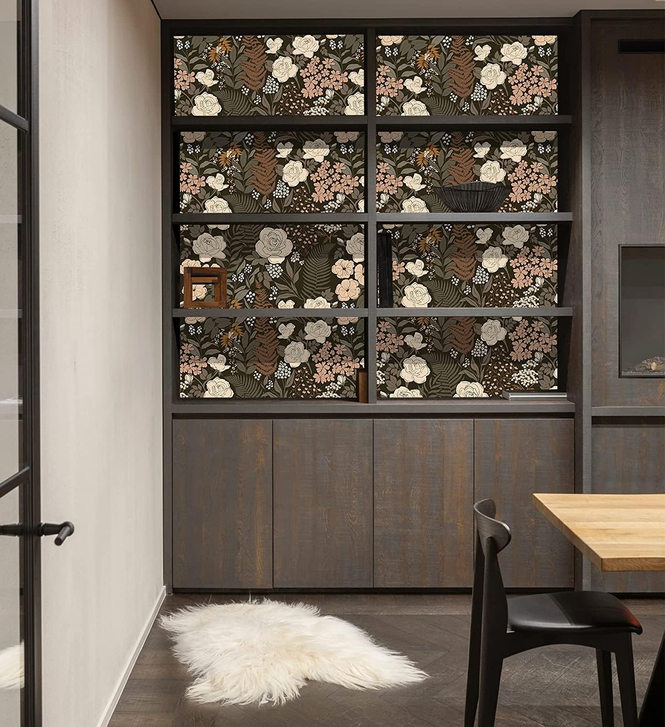 PATTERN & DESIGN: Pattern repeat is H17.7″ x W17.7″ (H45cm x W45cm), straight match. Firstly to find the correct pattern repeat and then just directly match without overlap, it’s very easy for beginner who never did peel and stick wallpaper before. This wallpaper features a retro floral/leaf design with dark color, it looks so beautiful and gorgeous! This vintage wall paper style matches to most of decor of your home.
