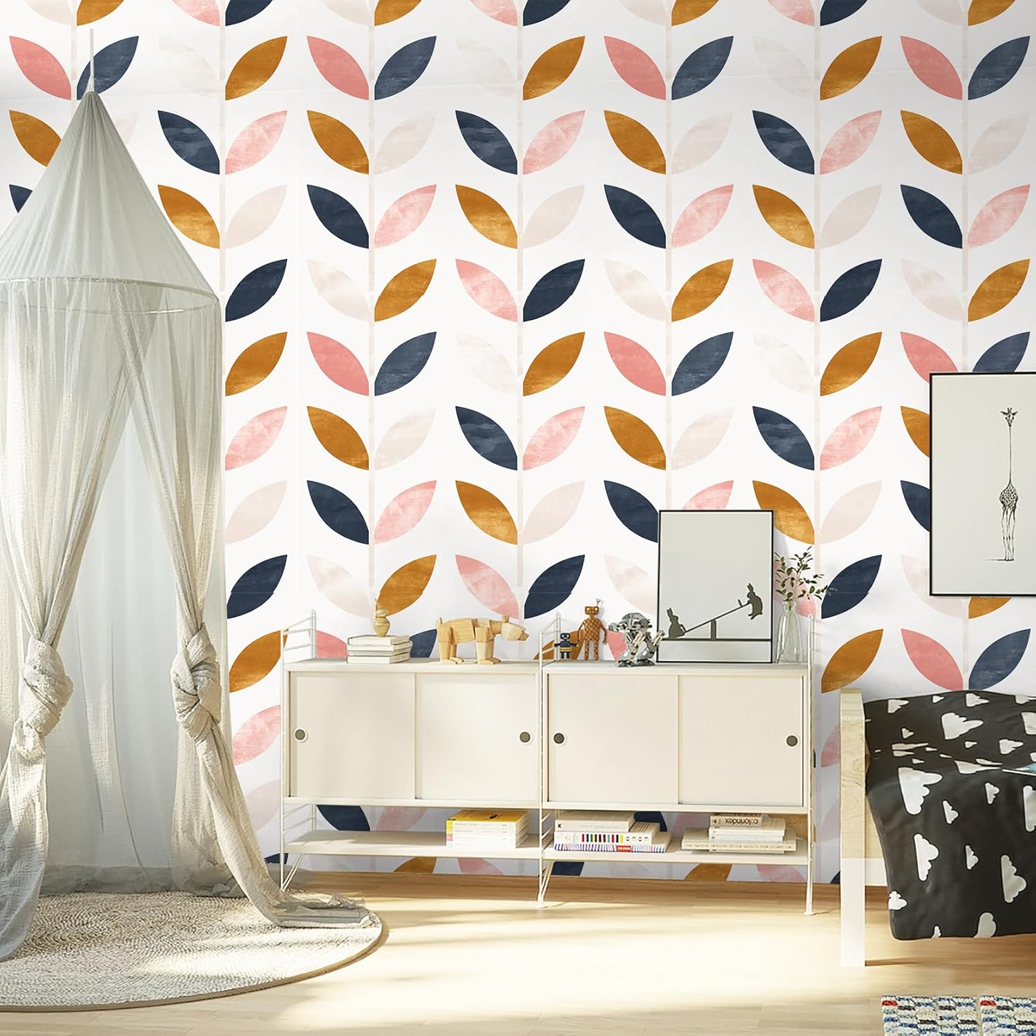 PATTERN & DESIGN: Pattern repeat is H21.6″ x W17.7″ (H55cm x W45cm), free match. It can apply both vertical or horizontal, just need put panel by panel directly, this is a very forgiving pattern and NO wastage NO overlap No pattern match. It’s very easy for beginner who never did peel and stick wallpaper before. This bohemian wallpaper features a vintage earth base color palette with lovely leaf that is good for nursery and girls home decoration.