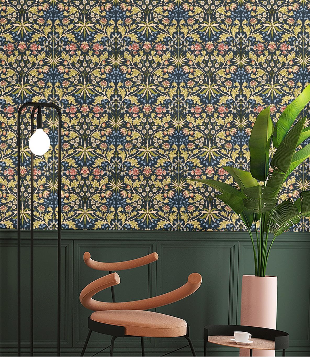 Blooming Wall DPYD21-A William Morris Tulips Harebells Leaf Textured Peel and Stick Wallpaper Self-Adhesive Prepasted Wallpaper