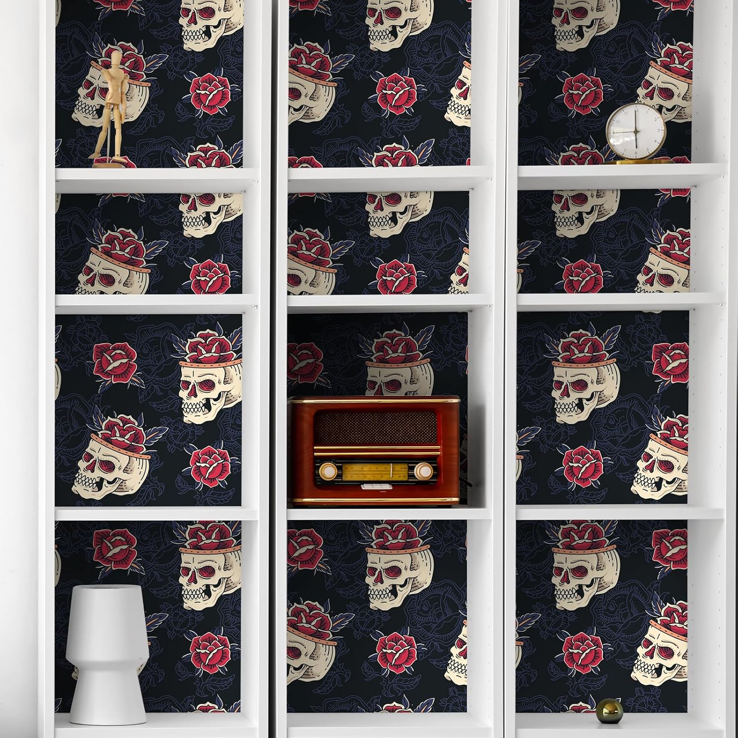 【Wide Application】Our floral skull wall paper is suitable for cabinet, drawer, shelf liner, bookshelf, dresser, wardrobe, closet, table, desk, bedroom, laundry room, dining room, kitchen, pantry areas, guest room, nursery, hallway, living room and any smooth and flat surface