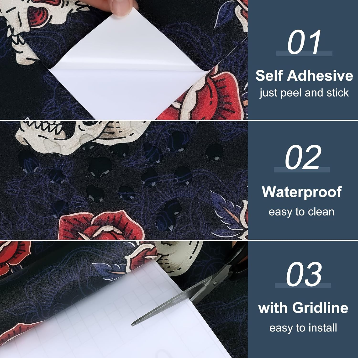 【Features】Dark background, sugar skull and rose flower pattern, self-adhesive, waterproof design, easy to clean, removable, renter friendly, a good choice to beautify your home