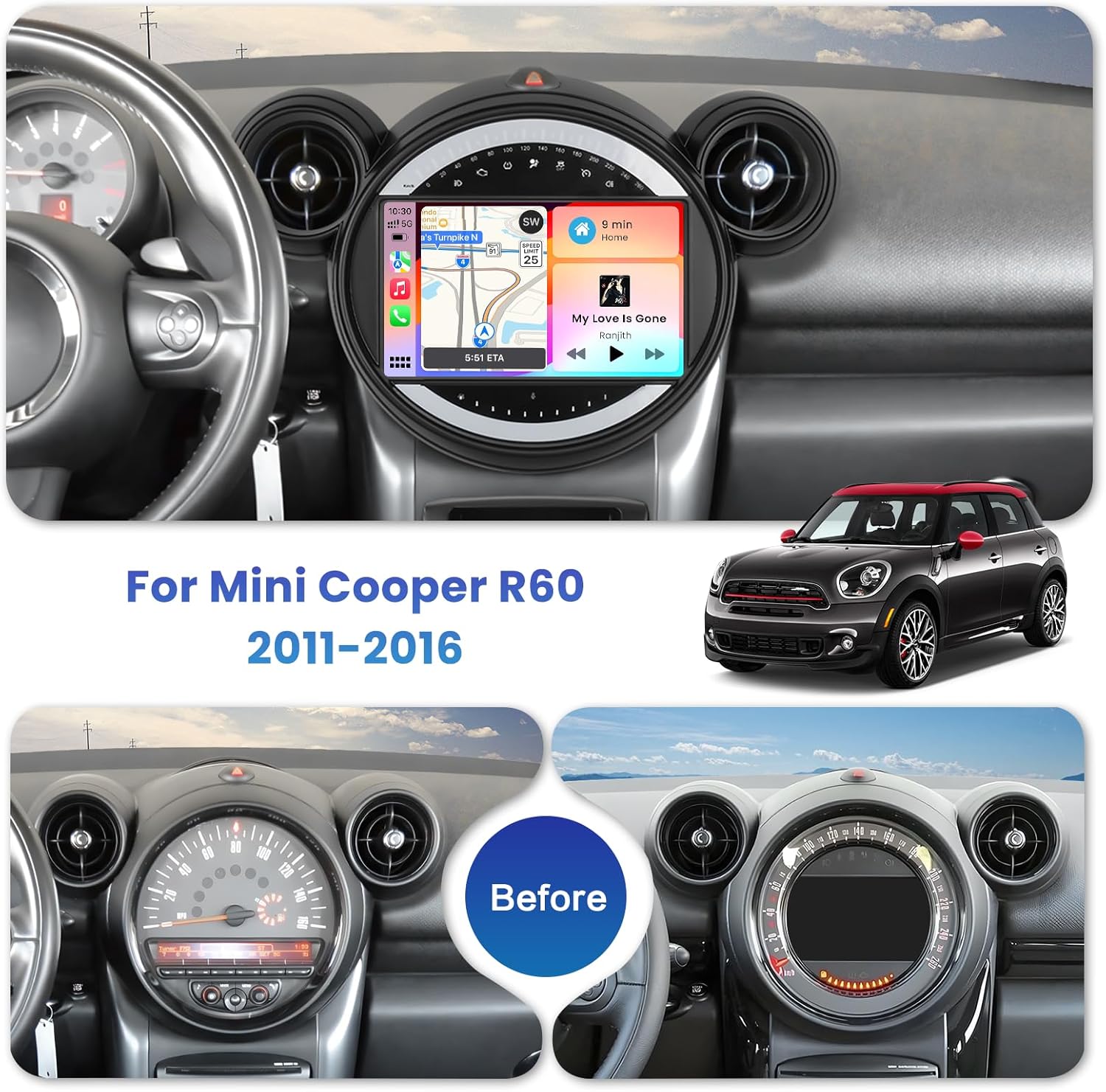 【GPS Navigation, WiFi Connection】Built-in WIFI allows you to download a variety of apps on the carplay radio for mini r60. Built-in GPS navigation provides you with online and offline maps, and the built-in positioning chip supports GPS/QZSS/SBAS