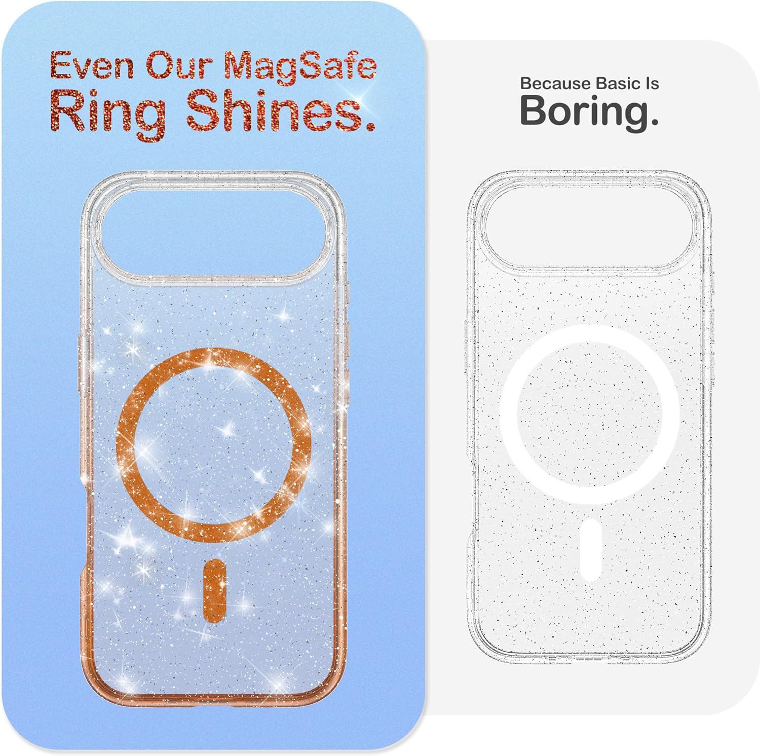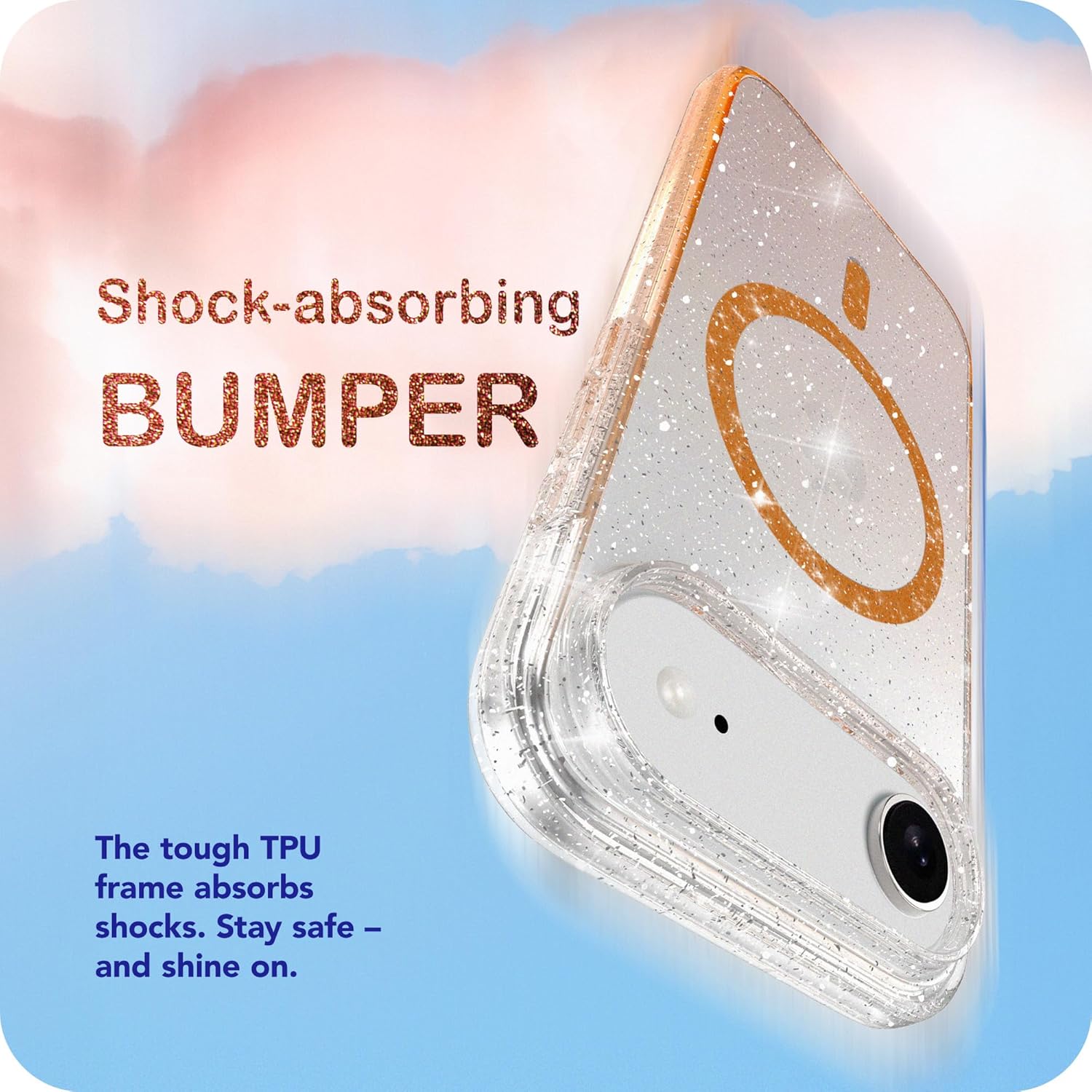 Glitter Magnetic Case for iPhone 17 Air – The Shiniest Glitter Ever for Women and Girls – [Compatible with Magsafe] – Sunset Orange