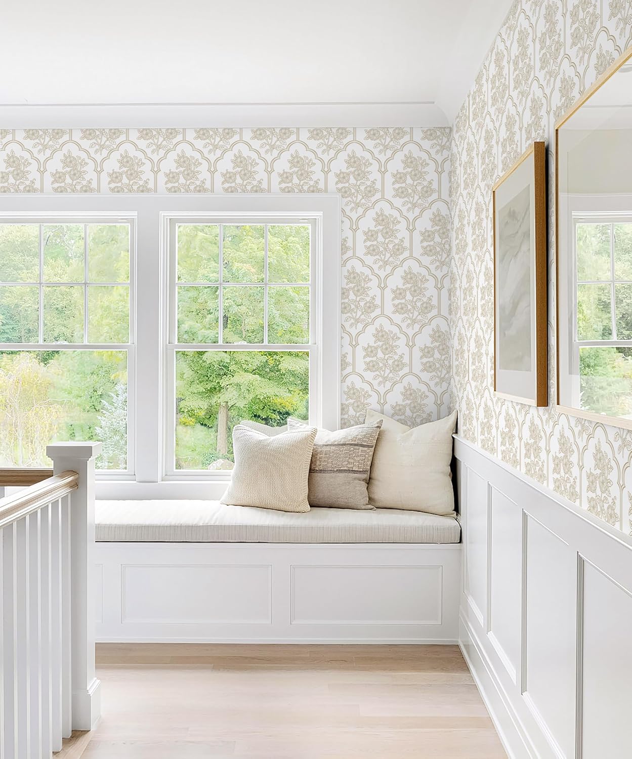 【Delicate Pattern】This beige floral wallpaper is meticulously crafted with delicate lines, cleverly framing the blossoms with rectangular borders,enhancing the neatness and elegance of this modern wallpaper