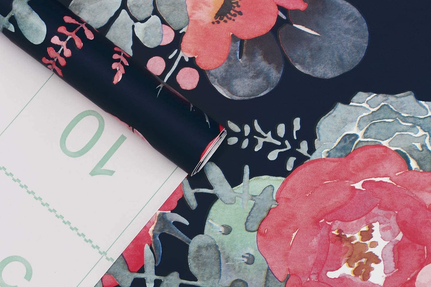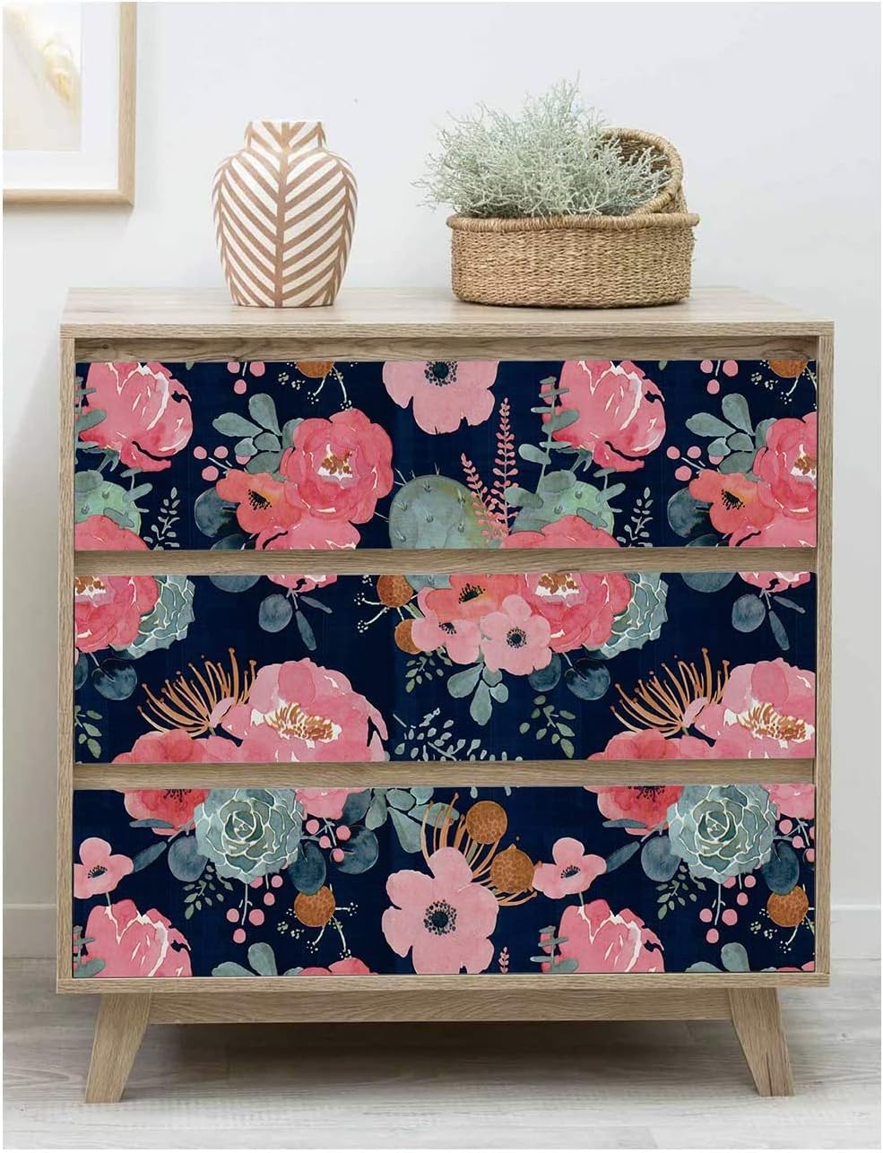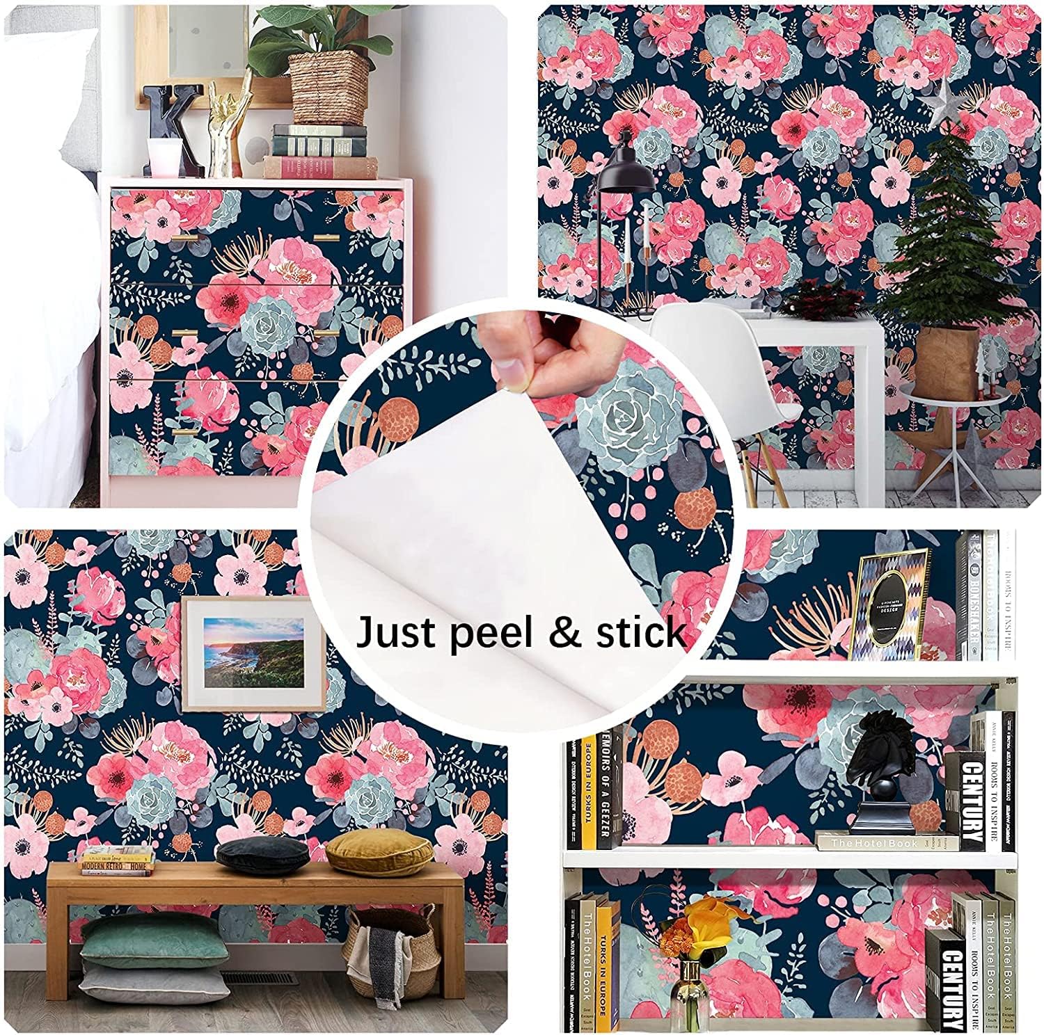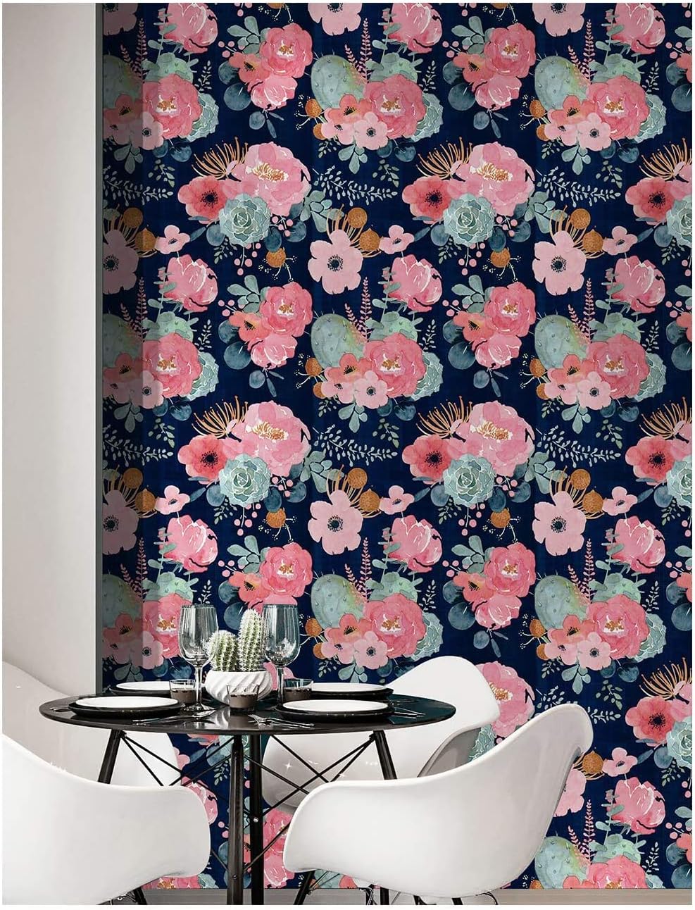 Peel and Stick Wallpaper Removable Floral Cactus Pink Navy Flower Vinyl Self Adhesive Prepasted Decorative for Girls Women Bedroom Cabinets Desk Countertops 17.7in x 9.8ft