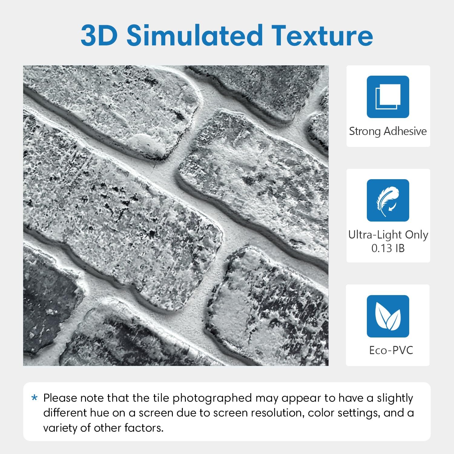 【High Quality & Durable PVC Materials】Comstickc 3D Peel and stick brick tiles are only 3mm thickness with premium PVC materials,but durable and flexible, so easy for DIY, 10 sheets cover 0.9 ㎡.