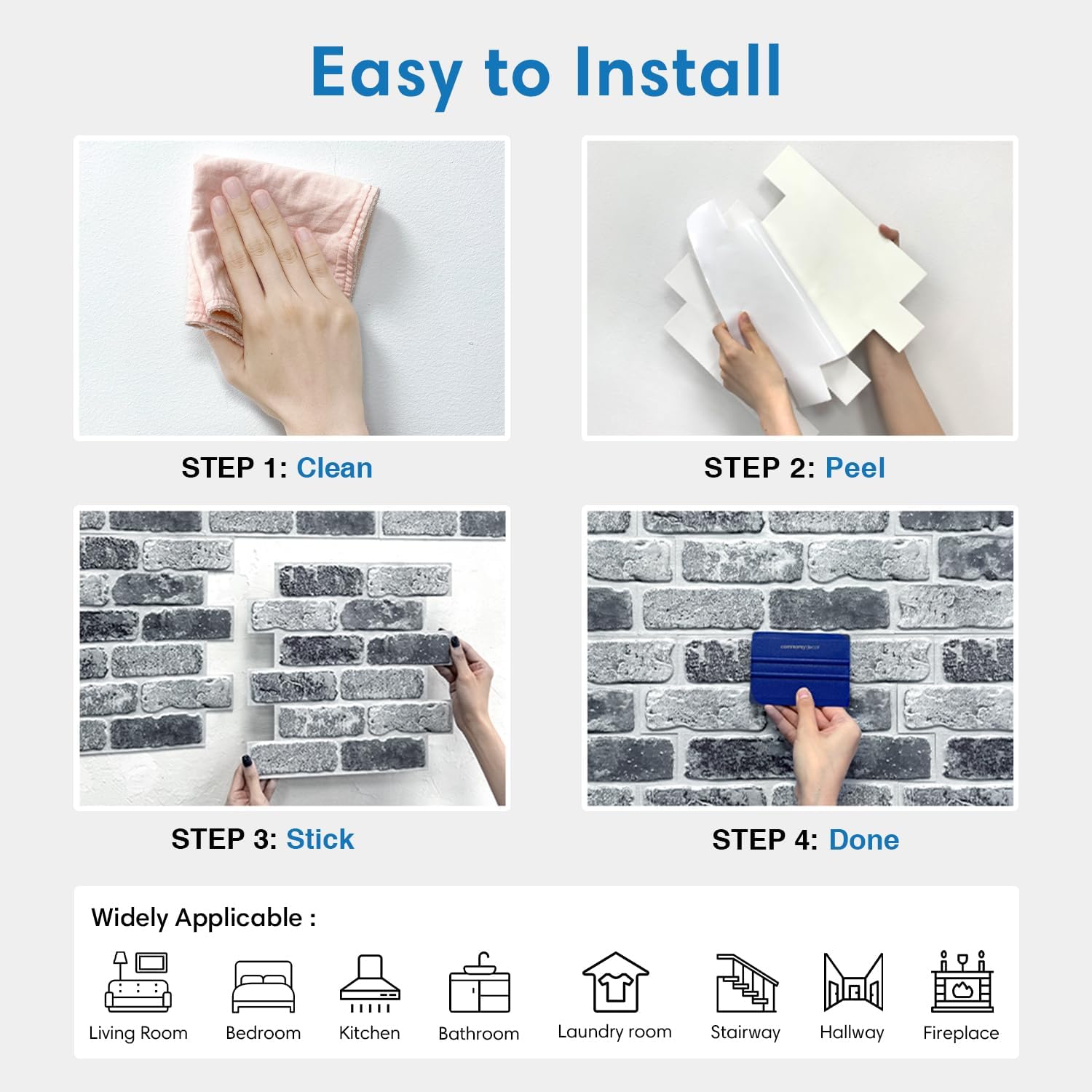【Heat and Water Resistant,Stronger Adhesive Backing】Our faux brick panels adapt well to different environments, very easy to clean and maintain.(NOTE: Please keeping 12 inches away from the stove or fireplace.)