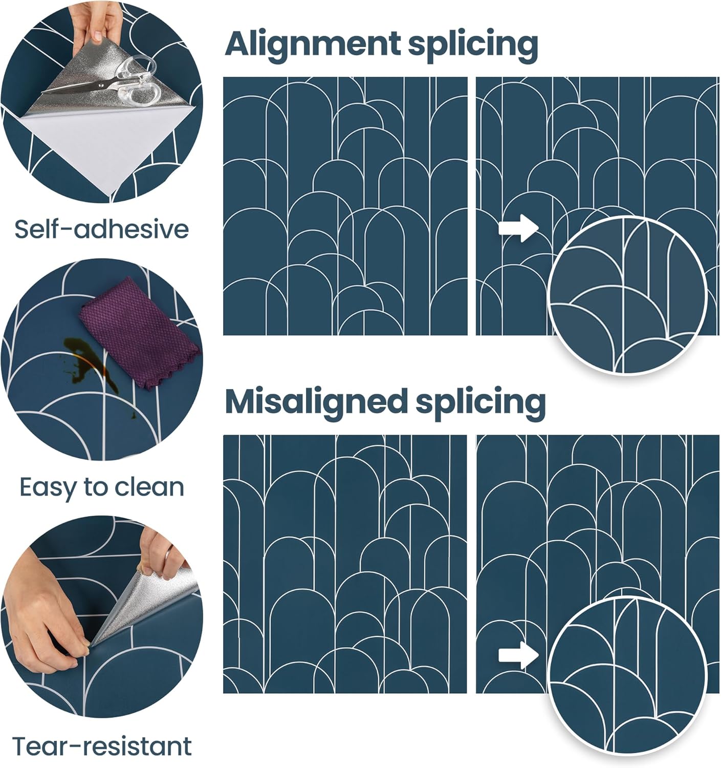 【Easy to Paste】: Our blue wallpaper peel and stick is designed by ourselves and you can be paste along the white line on the edge in the removable wallpaper, you don’t need to waste too much time to match removable wallpaper. Not suitable for use on frosted, grainy, uneven surfaces, otherwise it will affect viscosity