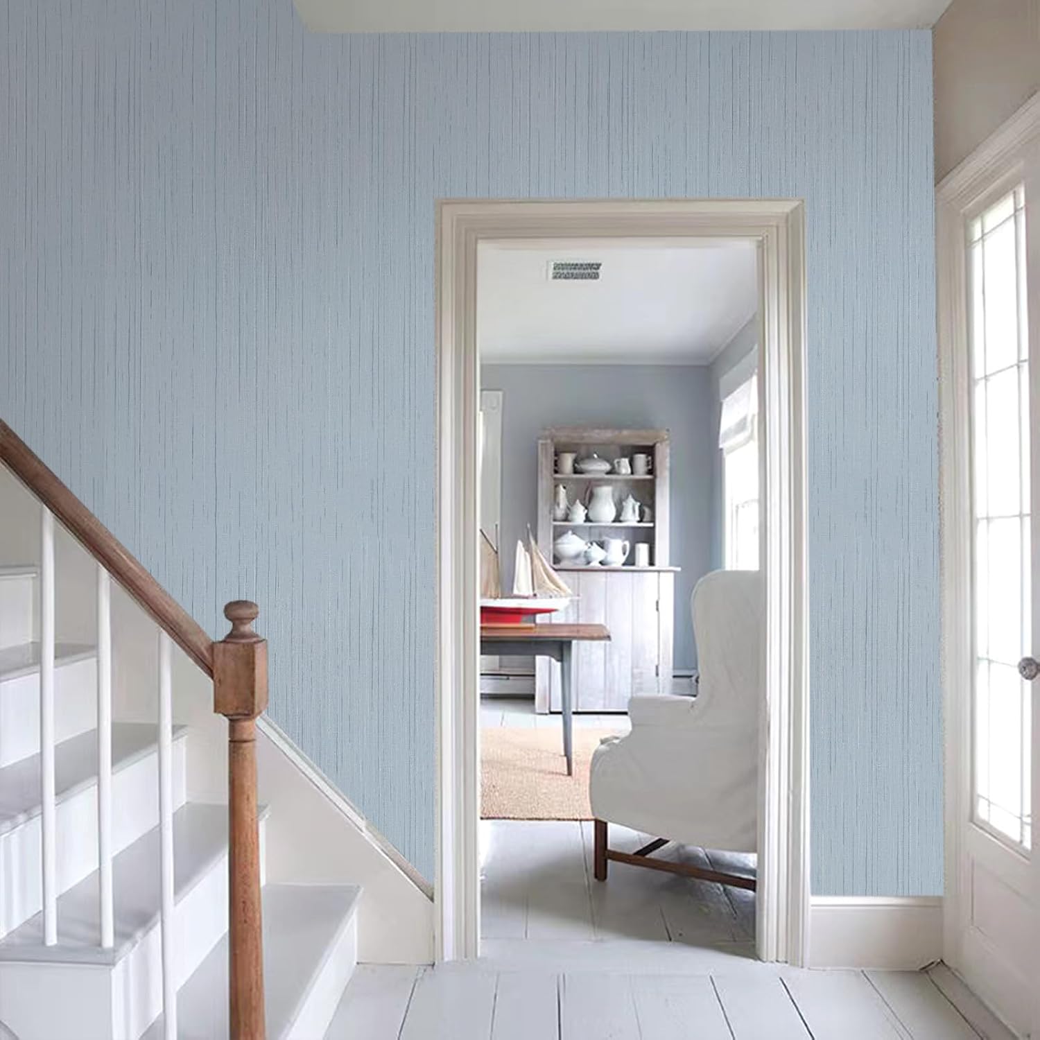 Light Blue Peel and Stick Grasscloth Texture Wallpaper 15.7″x120″ Vintage Wallpaper Removable Waterproof