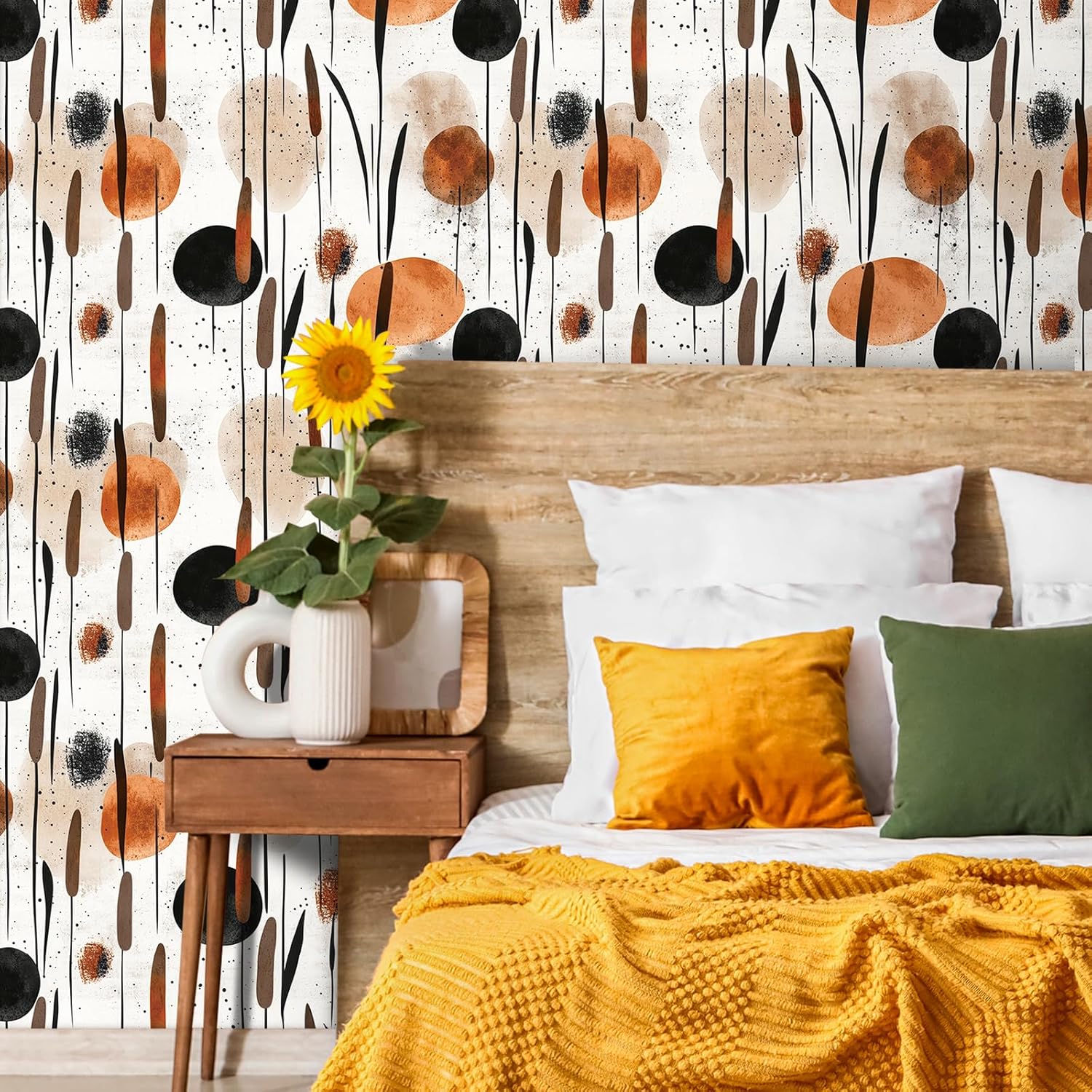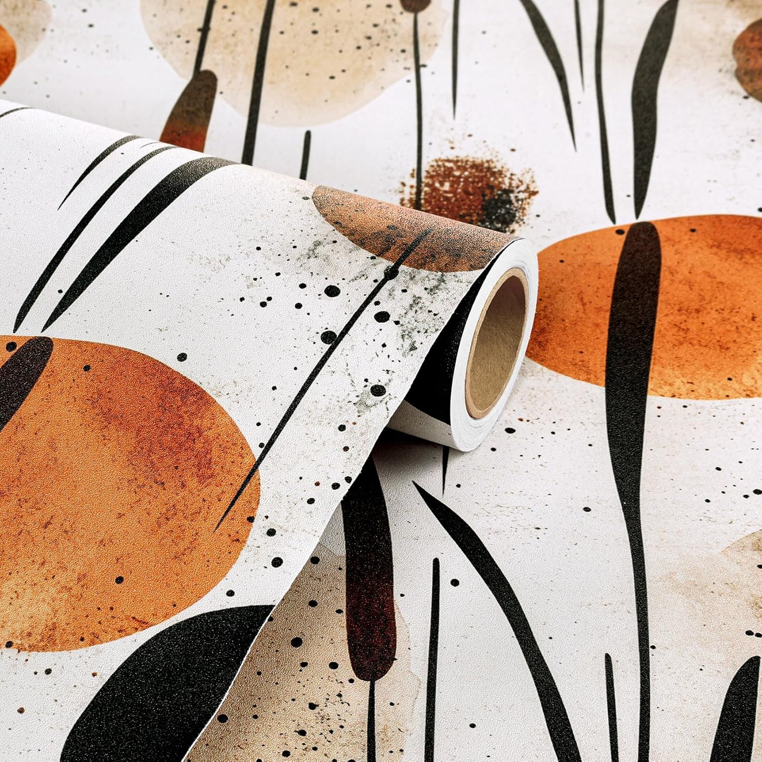 🏠All-PURPOSE: Abstract wallpaper for bathroom, abstract wallpaper for living room, retro wall paper for kitchen walls, burnt orange wallpaper for bedroom, retro decorative contact paper for cabinets, brown wallpaper for walls, boho wallpaper for room.