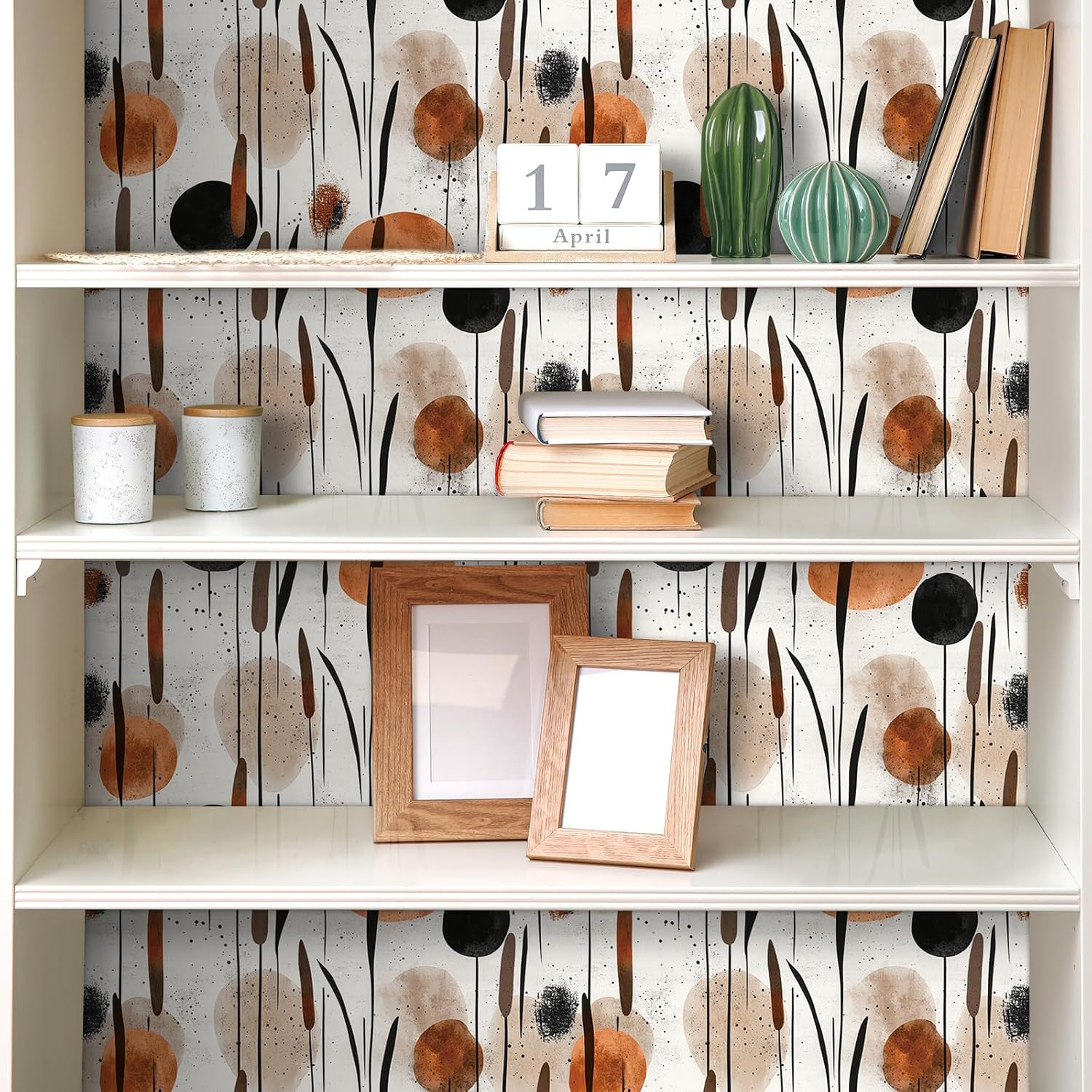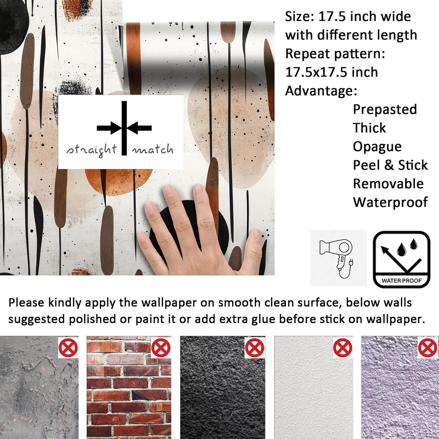 🏠DETAILS: Size 17.5 x78.8 Inch , total 9.57 sq.ft(44.5cmX2m), Self adhesive (no extra glue needed). Made of durable vinyl, Abstract retro wallpaper peel and stick, Matte, Waterproof, Removable.