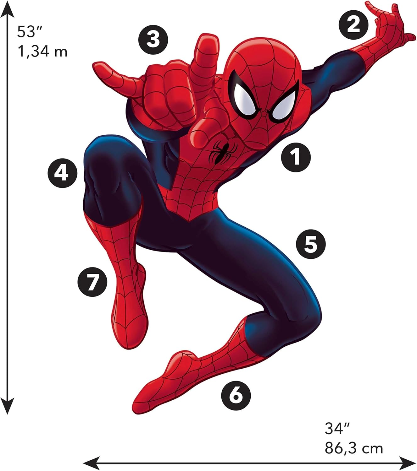Marvel comics superhero, Spider-Man, swings with his web into the homes of fans with this giant Ultimate Spider-Man peel and stick wall decal from RoomMates. Action addicts will love to decorate their spaces with their favorite web-slinger. Measuring 53” high, this powerful hero makes a great statement wherever he resides! RoomMates wall decals are an easy and affordable way to decorate in minutes. Reposition or remove them effortlessly with no remaining sticky residue or damage to walls.
