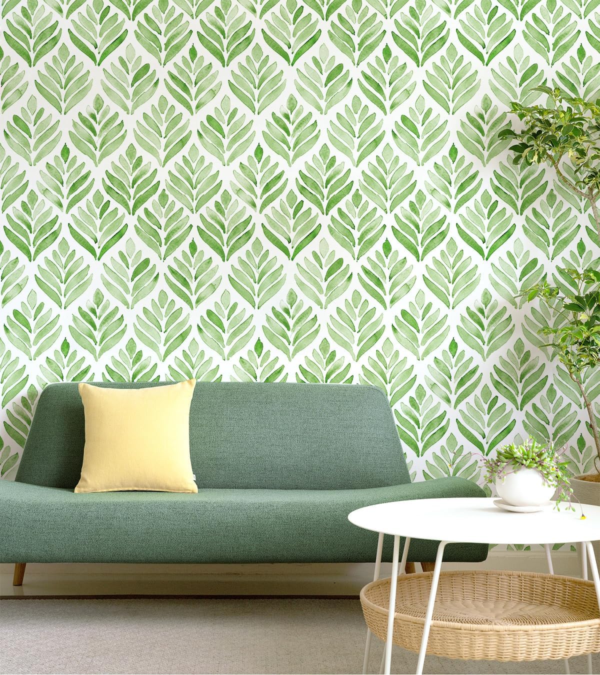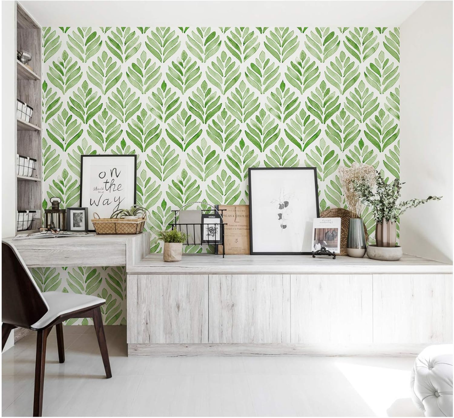 ROLL DIMENSION: 1 roll wallpaper – 17.7 inches wide by 9.8ft long, covers 14.5 square feet. 17.7″ is the fixed wallpaper width of each roll. We are offering 2 sizes for this boho green wallapper, please choose “S” for small DIY projects like shelf liner or drawser liner and “L” for large walls, if the height of the place you would like use this peel and stick wallpaper is obove 9ft, pls choose “L” size for this self adhesive wallpaper.