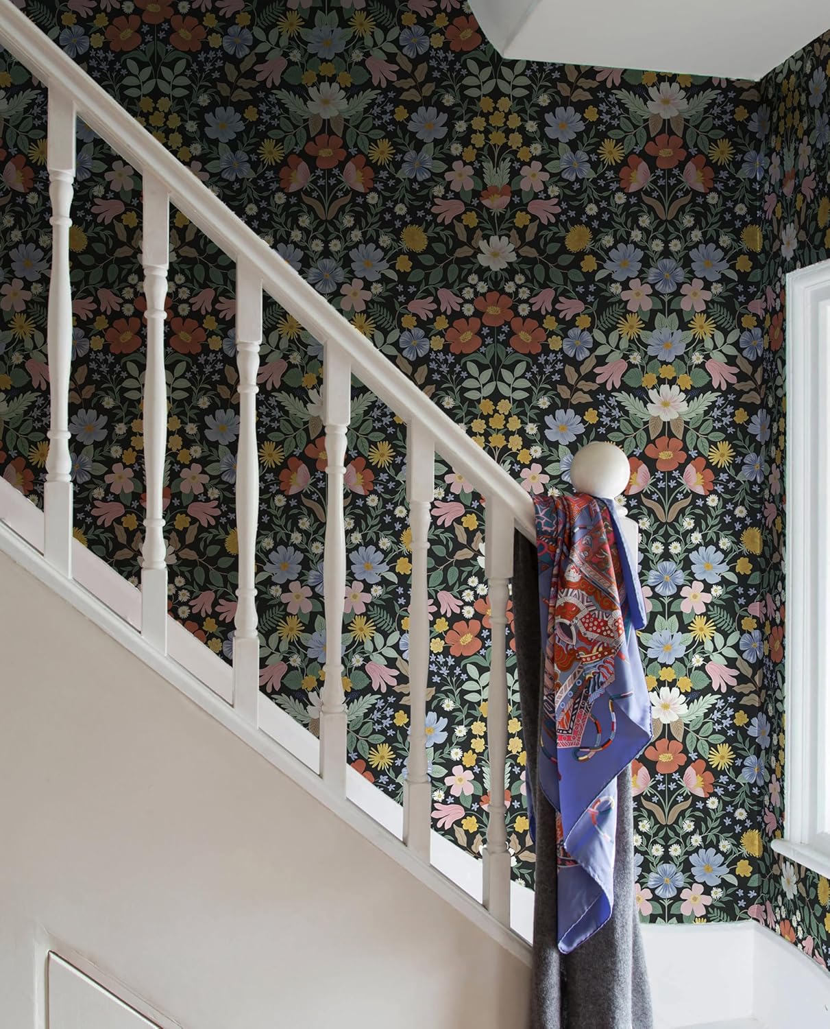 【Wallpaper Information】Color:black background colorful floral;Size:16.9inch×118inch = 1.41ft×9.83ft = 13.86 sq.ft (0.43m x 3m =1.29sq.m) ;Pattern repeat :16.9 inch*15 inch