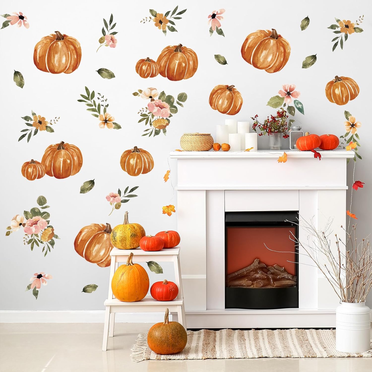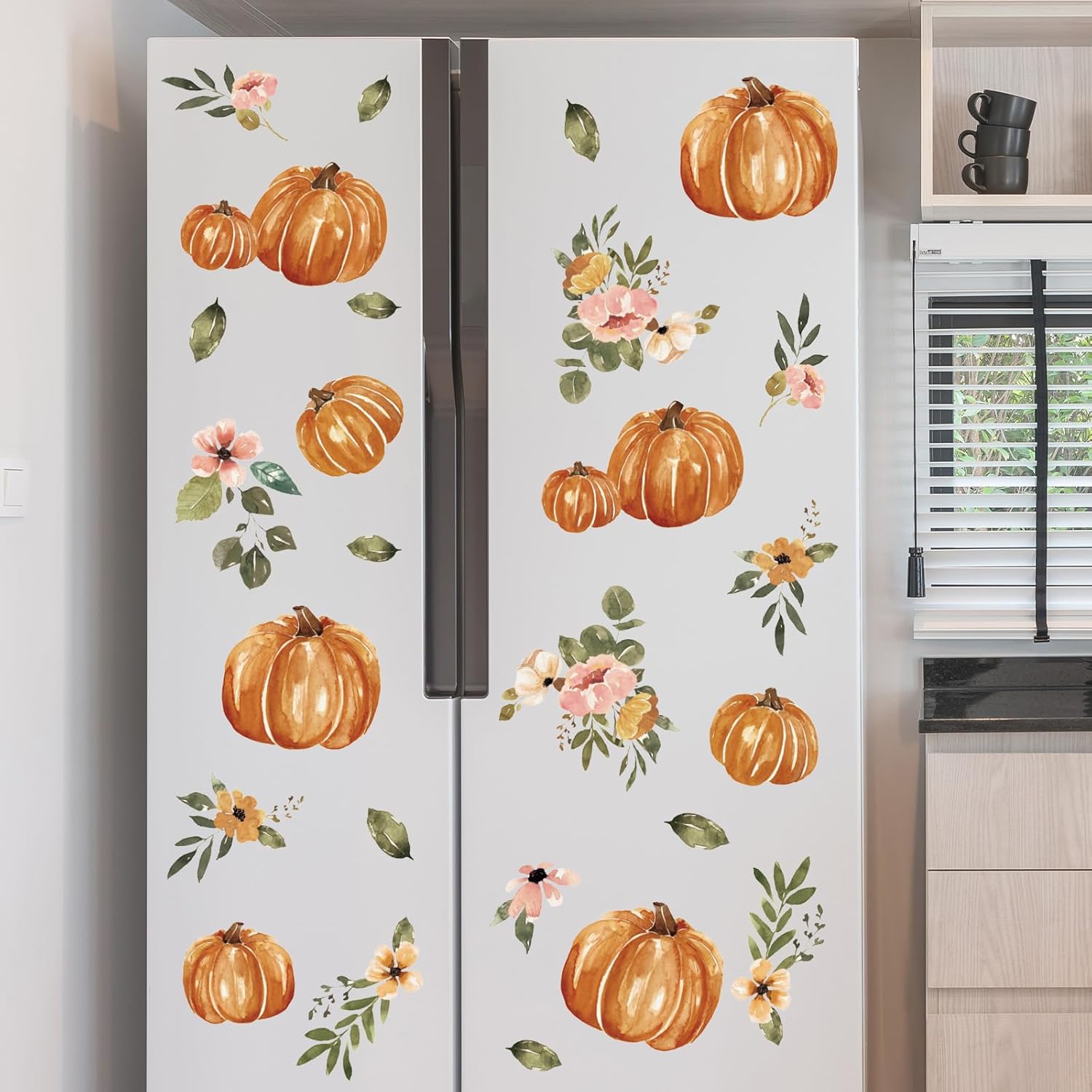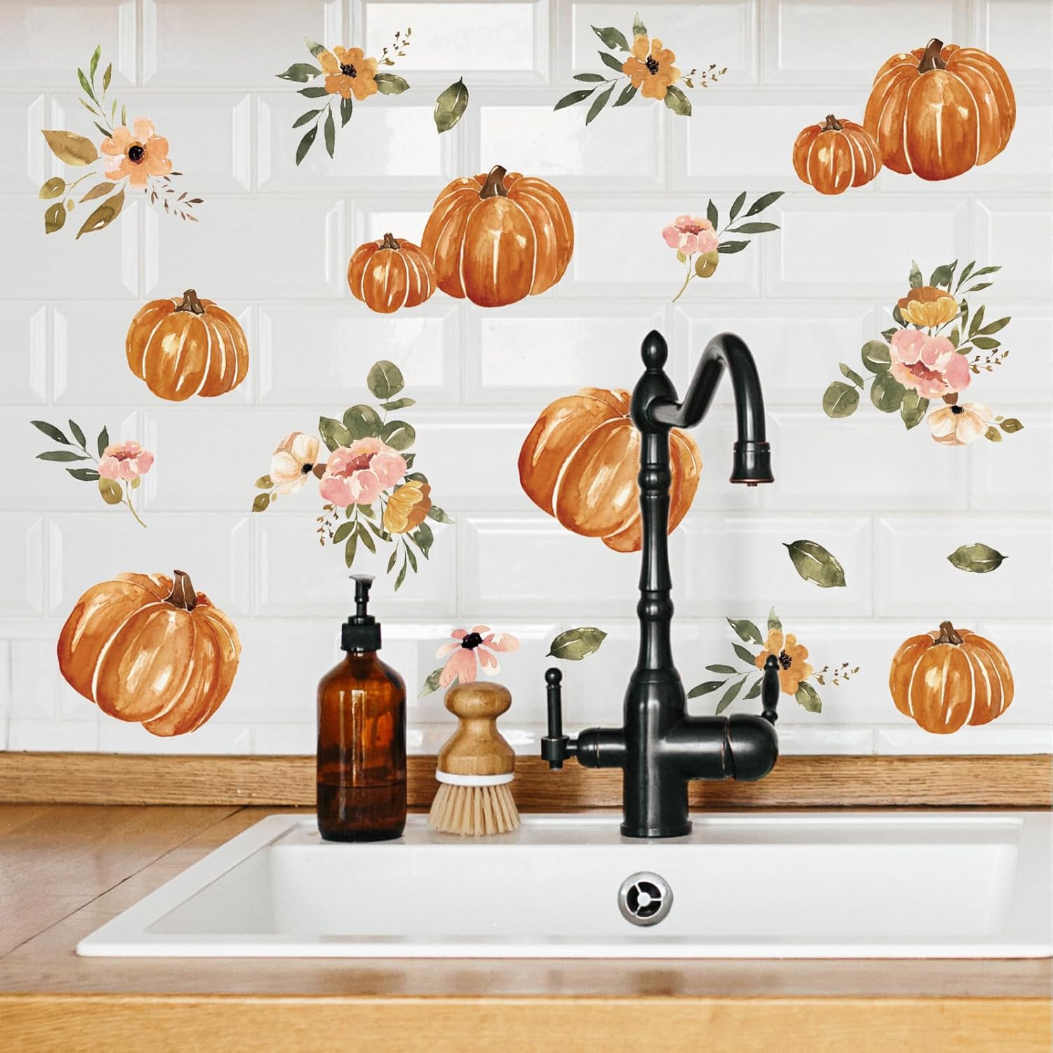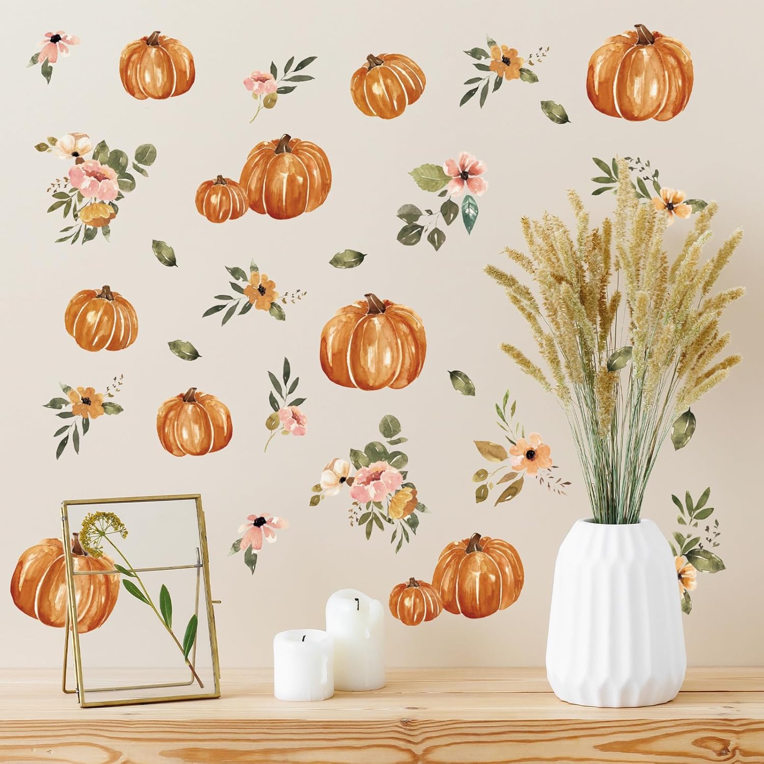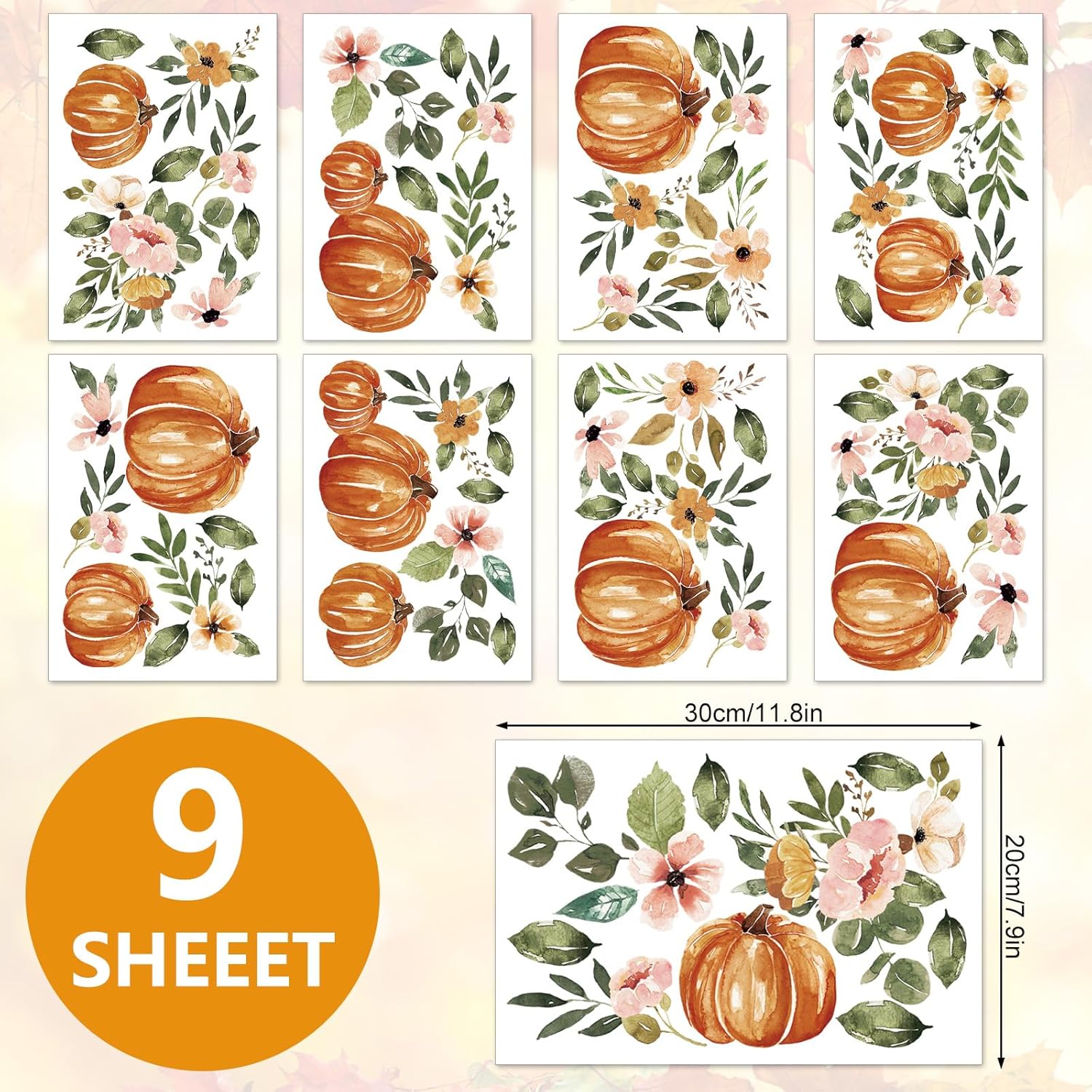 9pcs fall wall stickers, designed with watercolor pumpkins and flowers, proper size to meet your needs for decoration. Bring your room with a breath of beautiful and fun.