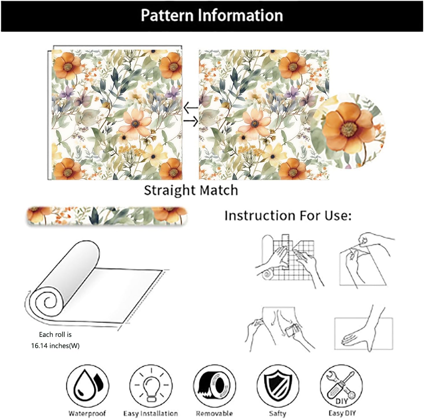 【FEATURES】: Self-adhesive wallpaper, easy to apply, no additional use of glue. Using mature watercolor rendering technology, the artistic colors are not only beautiful and eye-catching, but also the texture of embossing is exquisite and the feel is good