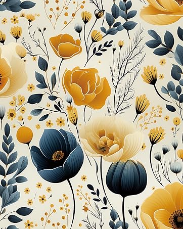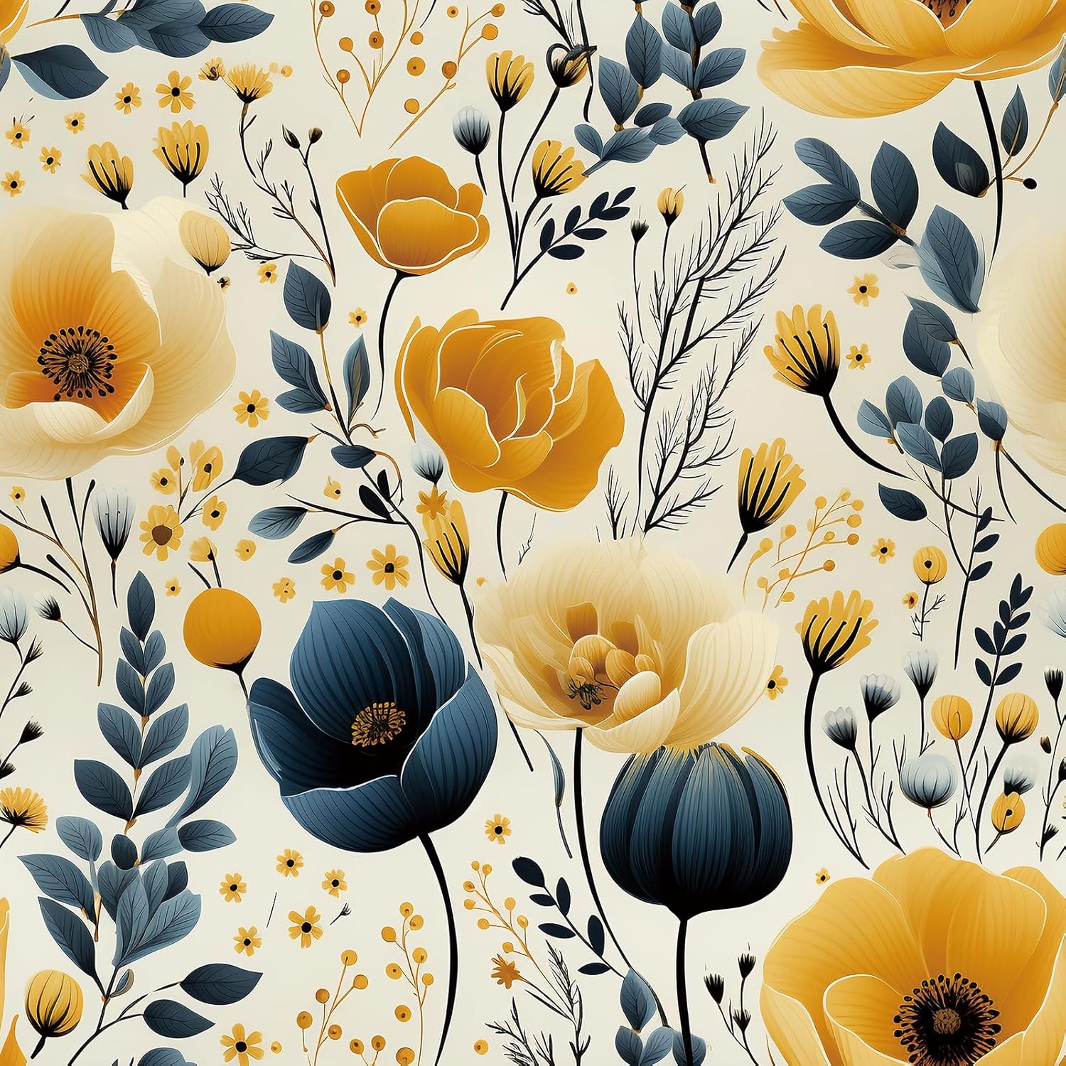 🏠DETAILS: Size 17.5 X78.8 Inch , total 9.57 sq.ft(44.5cmX2m), Self adhesive (no extra glue needed). Made of durable vinyl, Navy blue and yellow floral wallpaper peel and stick, Matte, Waterproof, Removable.
