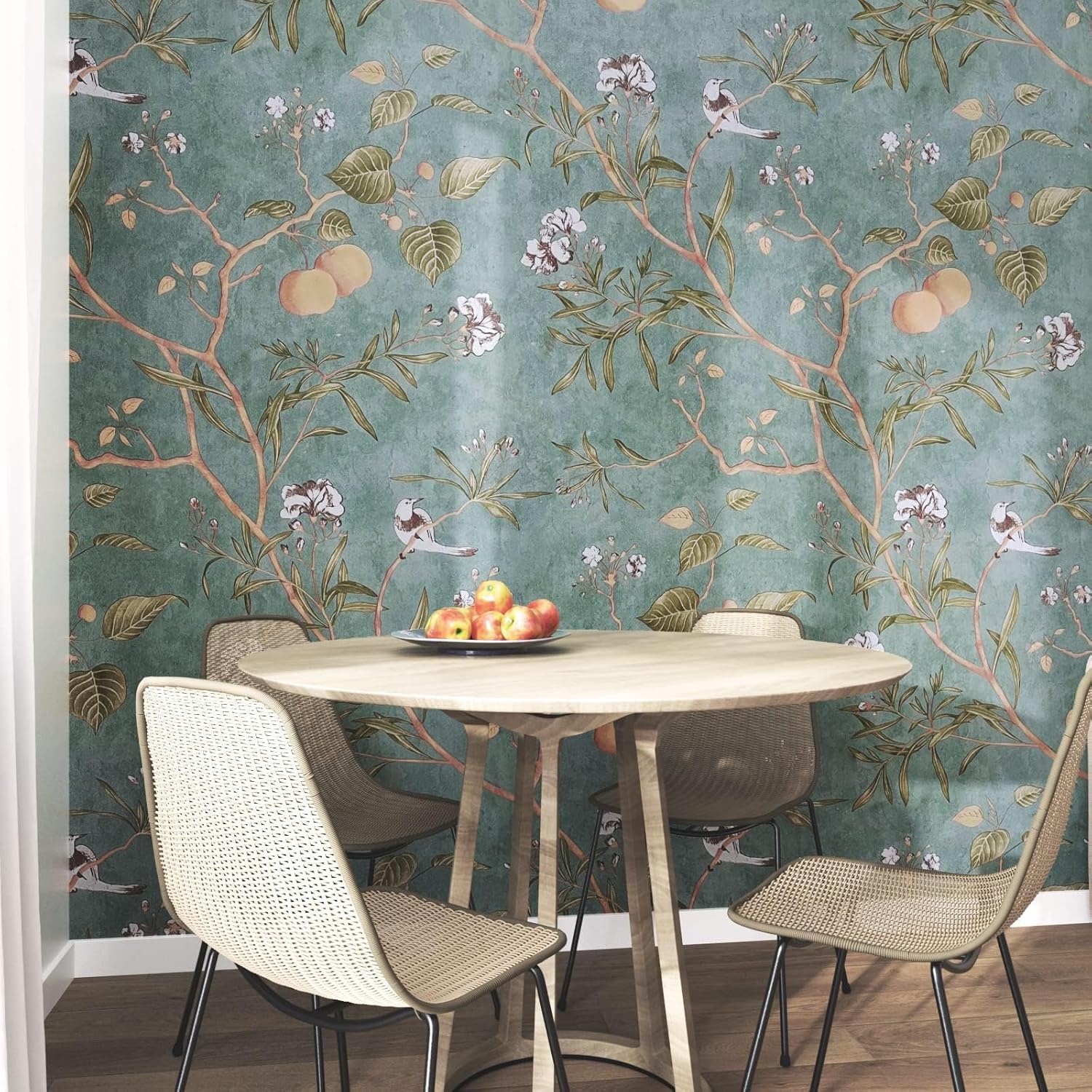 【Warm Tips】The Chinoiserie style floral wallpaper is not suitable for uneven walls or cracked surfaces, it may fall off when on a textured surface. The color may vary due to individual screen resolution and lighting. Please contact us if you have any question about our wallpaper.