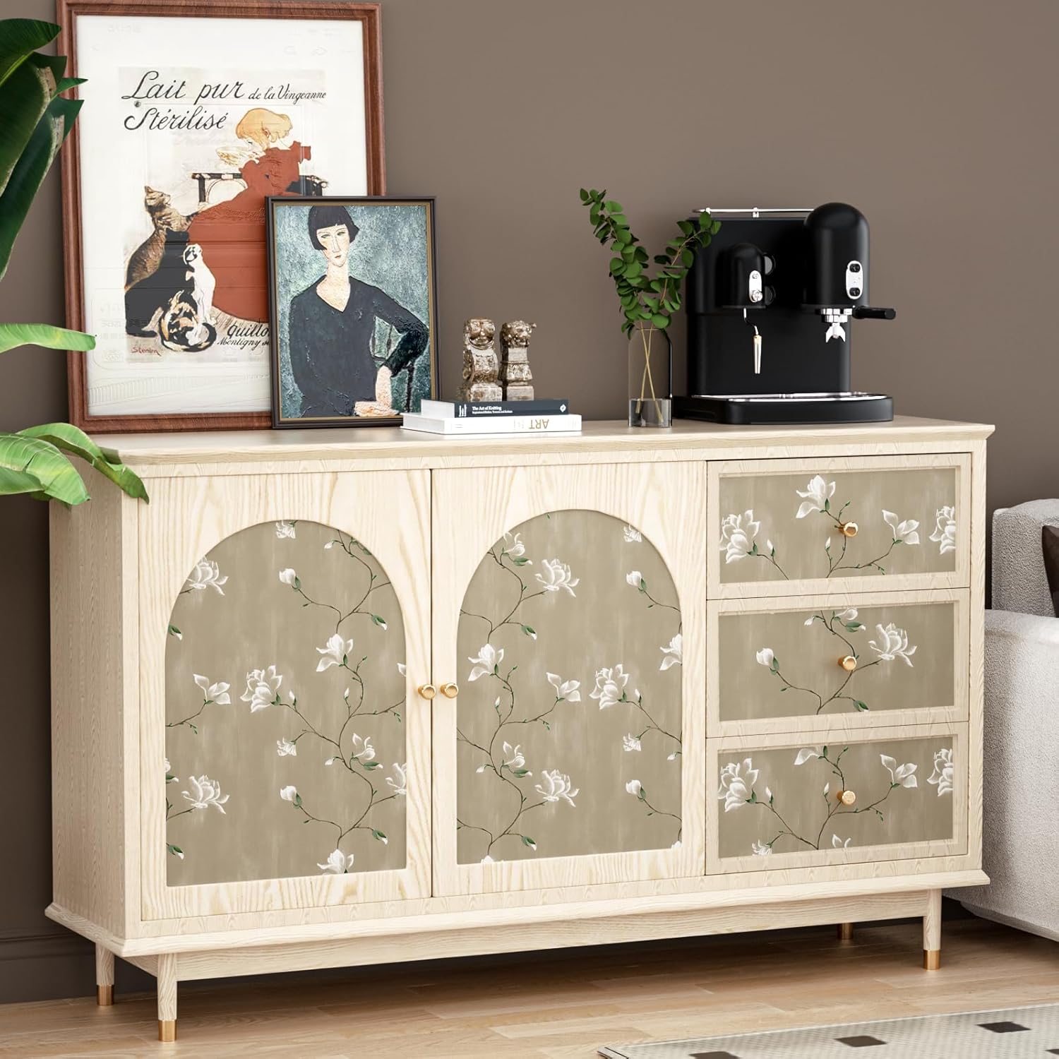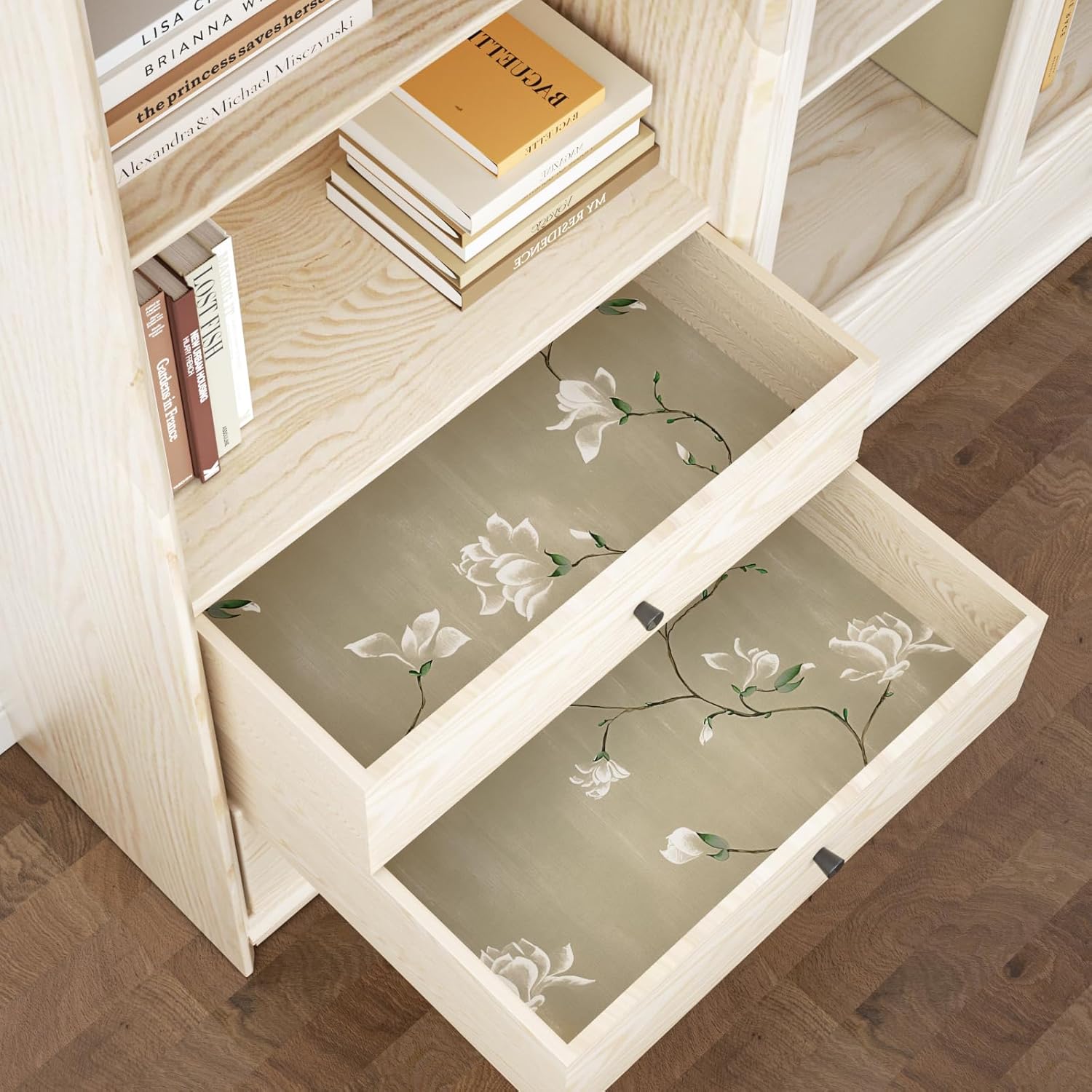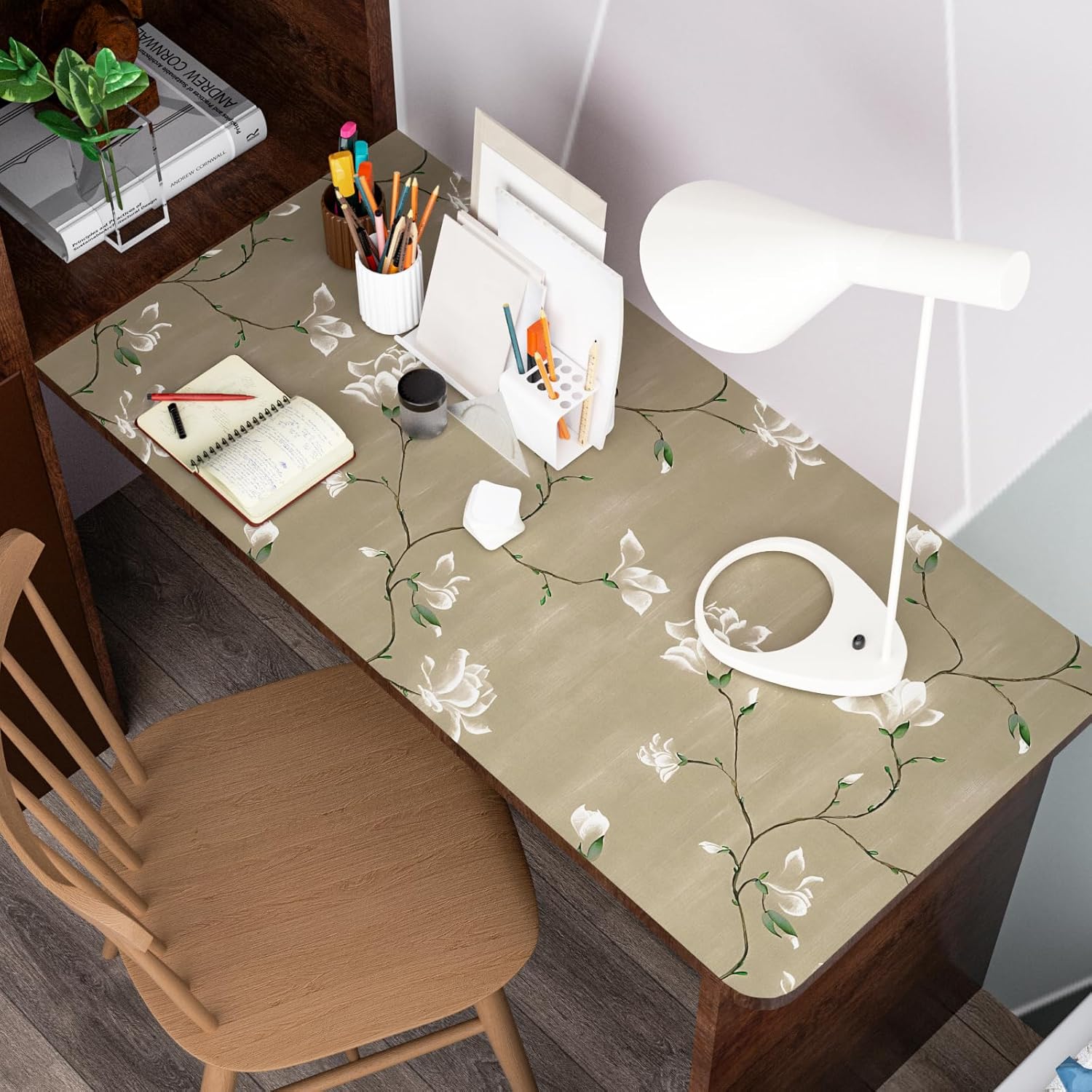 【Multi-purpose】This DIY modern floral peel stick wallpaper is an affordable option to refurbish or decorate your home, can be as contact paper for cabinets, countertop, fireplace, garage, back splash, vintage wallpaper for drawer, desk, bookcase, kitchen, staircases, locker, bedroom wall, shelf liner and bathroom, stick everywhere you like. Renter friendly and temporary wallpaper for apartments. Khaki floral contact paper is beautiful whether pasted on large or small areas.