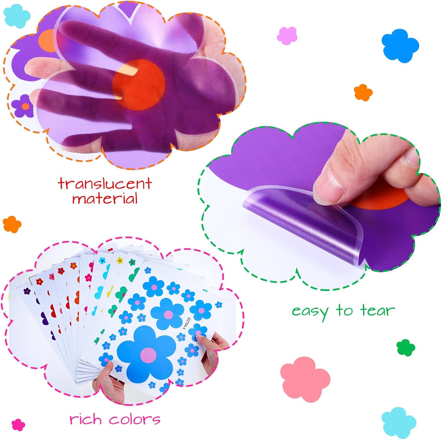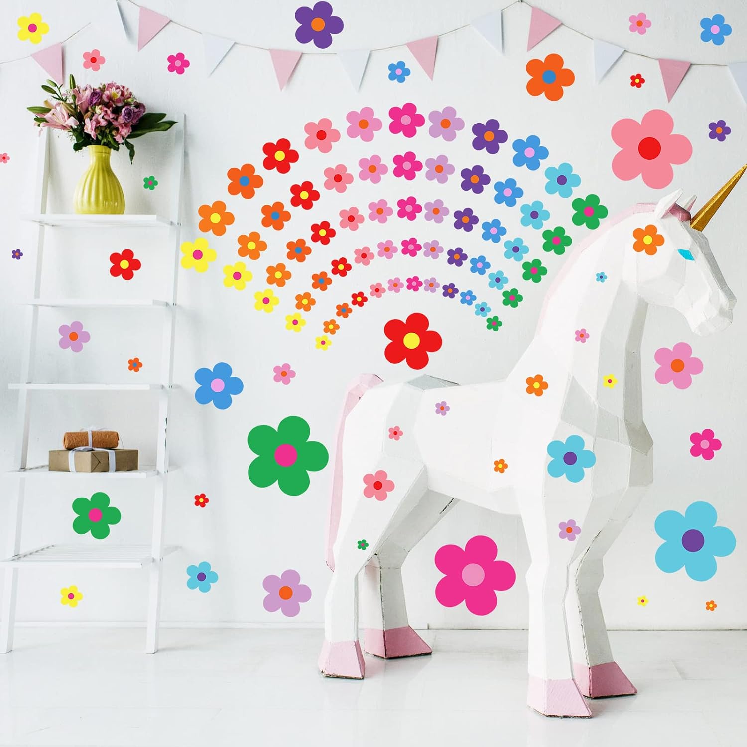 TaoBary 288 Pcs Y2k Cute Flowers Wall Sticker Colorful Floral Wall Decal Vinyl Peel and Stick Preppy Hippie Stickers Aesthetic Flowers Decor for Nursery Bedroom(9.1 x 11.4 Inch,Bright Colors)
