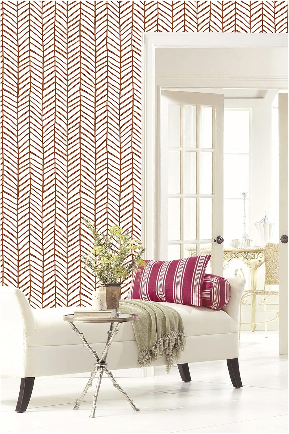 PATTERN REPEAT: H24.4″ x W17.7″ (H62cm x W45cm), Straight Match. This design is almost free match with less wastage for pattern match, it’s much easy for beginner who never did peel and stick wallpaper before. Upgrade your bathroom or accent wall with our Classic Herringbone Peel and Stick Wallpaper, a timeless orange and white design. This removable, renter-friendly wallpaper is self-adhesive, waterproof, and effortless to install/remove without residue, perfect for renters or homeowners for modern and boho home decorations