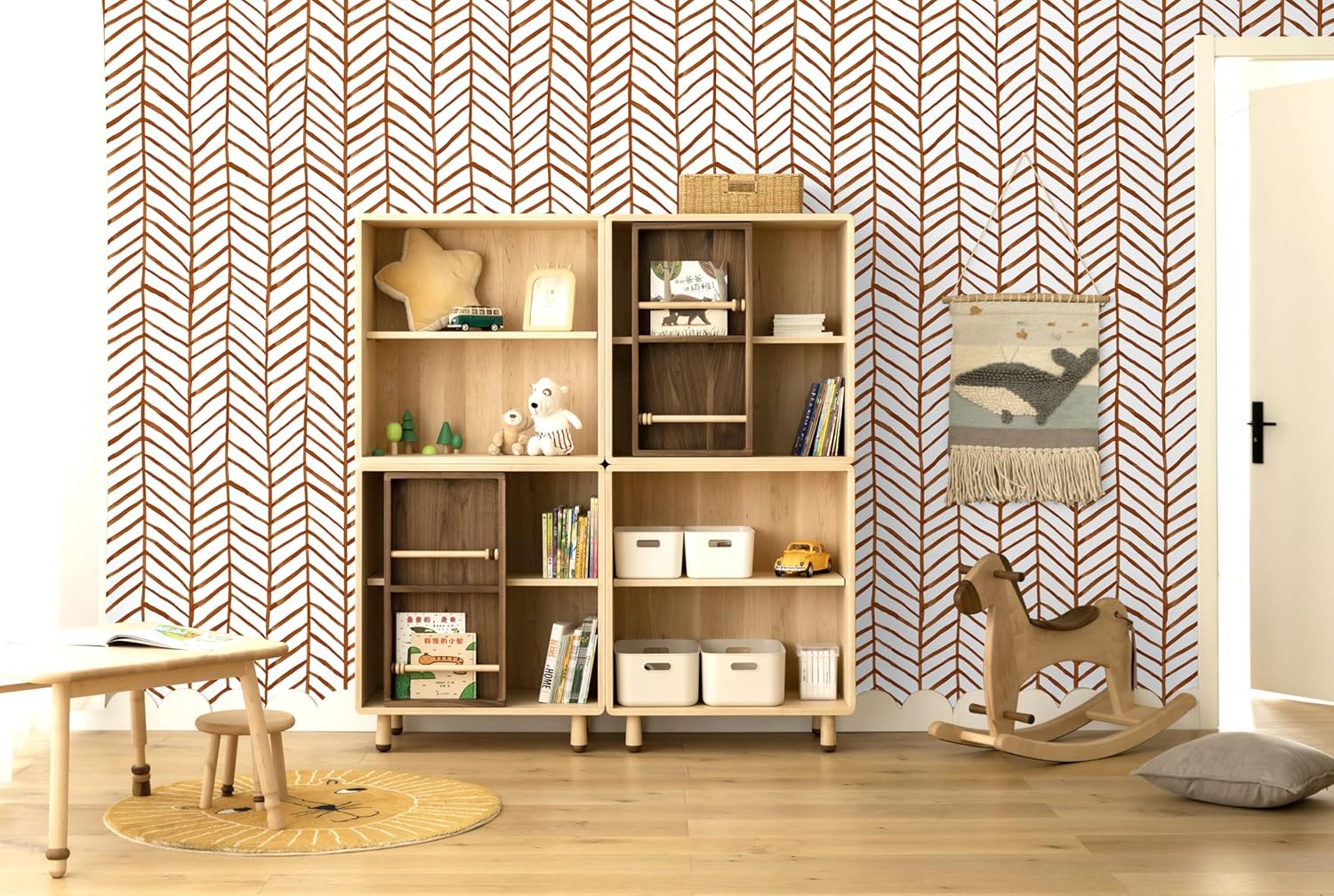 HAOKHOME Boho Peel and Stick Wallpaper Herringbone Orange Modern Striped Textured self Adhesive Decoration 17.7in x 9.8ft