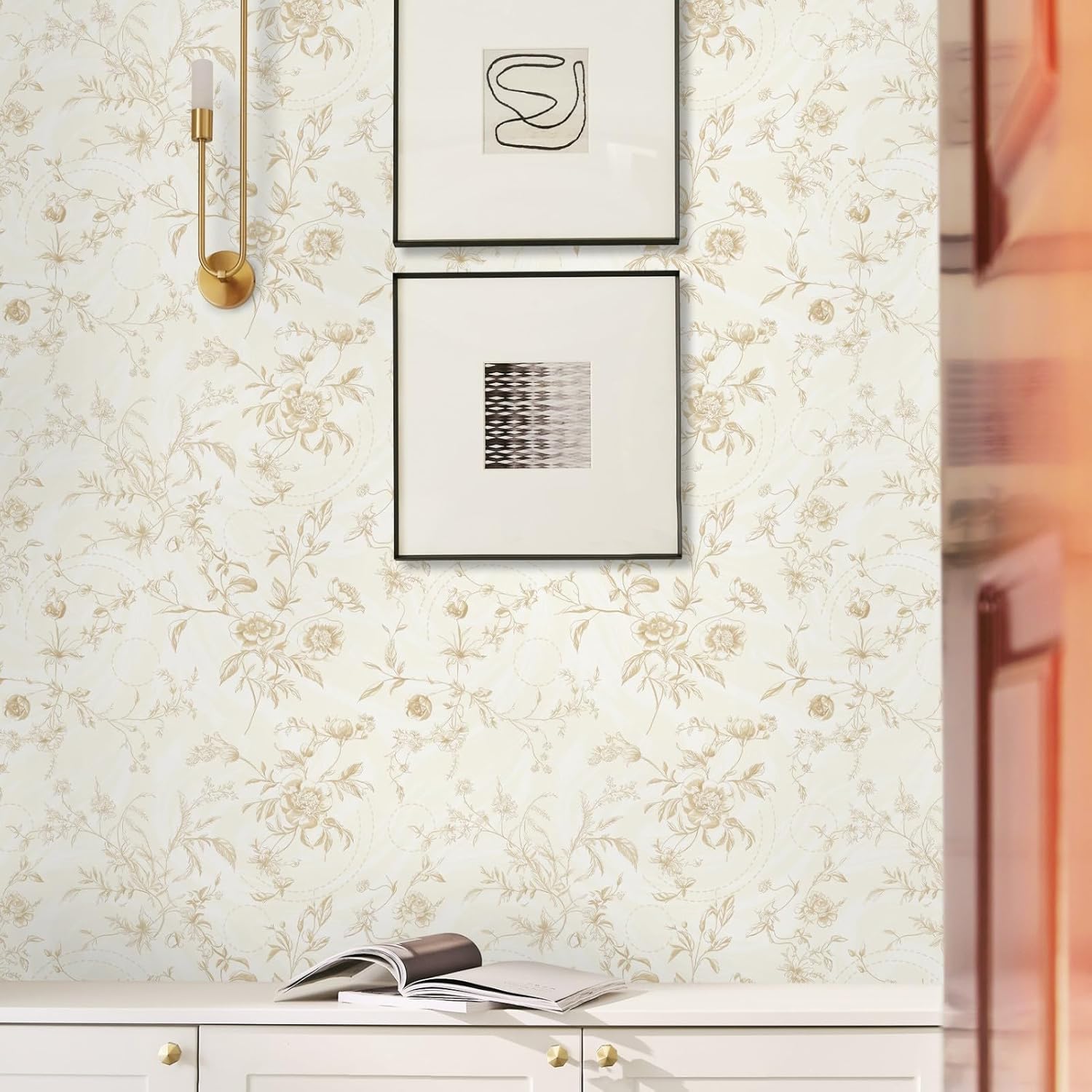 【DESIGN】–Inspired by classic french floral, combining beige and delicate flowers, the warm and neutral beige color conveys vintage charm. Perfect for large scale decorating and old furniture remodeling.