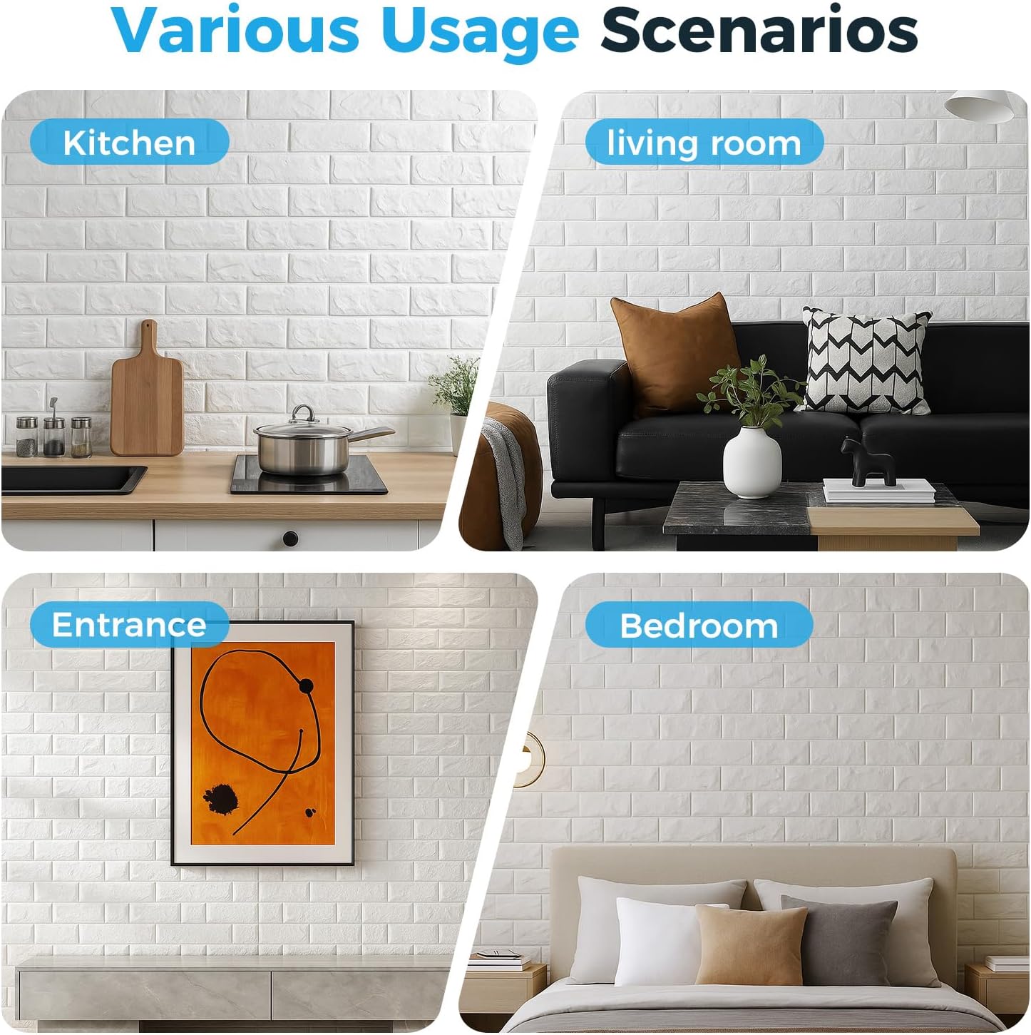 Wide Range of Applications: You can put these White brick 3d wallpaper for living room, basement, bathroom, kitchen, fireplace and so on. These 3D faux brick wallpaper peel and stick with very strong glue will hold great, don’t worried about fall off.