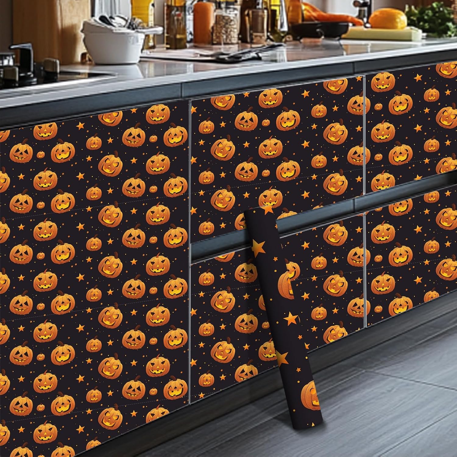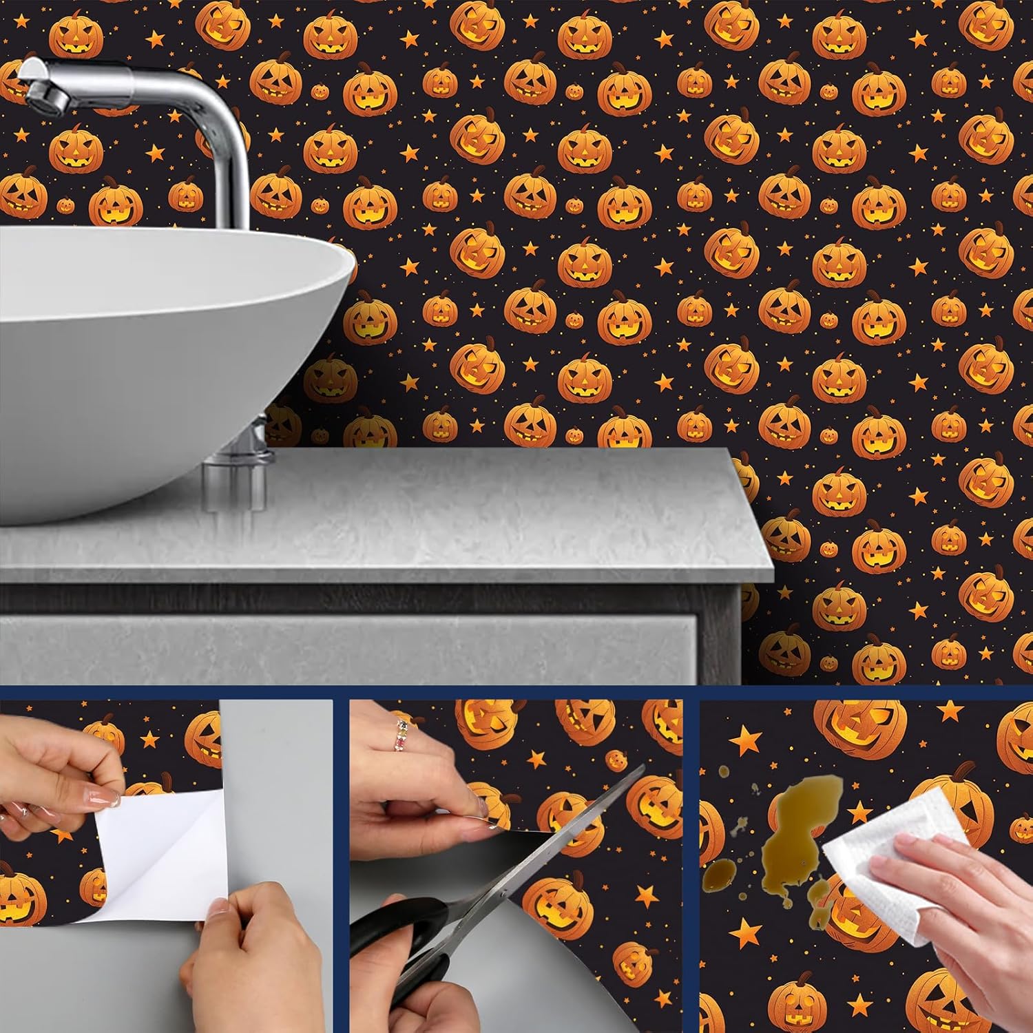 Pumpkin Wallpaper Peel and Stick Halloween Contact Paper Wall Paper Stick 118.1″x17.7″ Self Adhesive Vinyl Decorative Wall Covering for Bedroom Living Room Party Spooky Decor