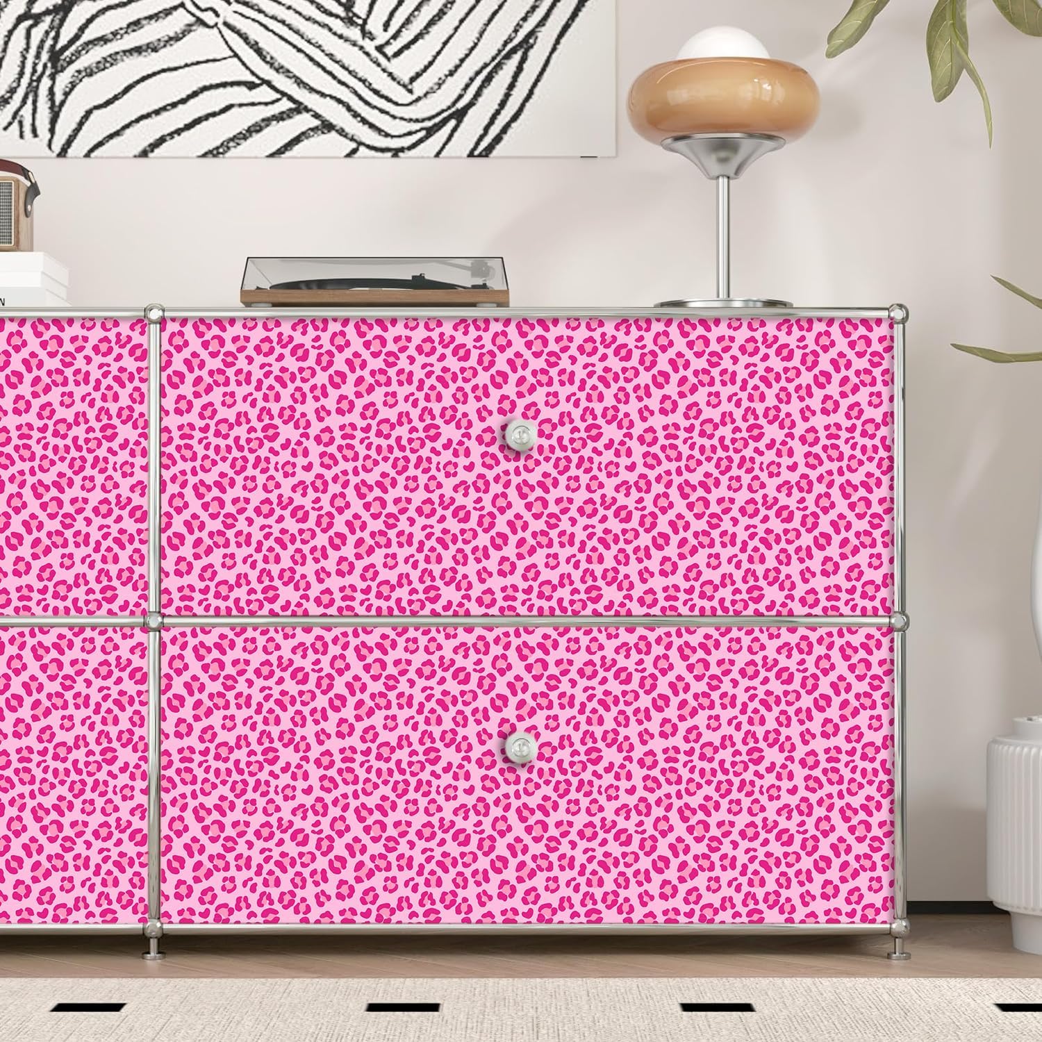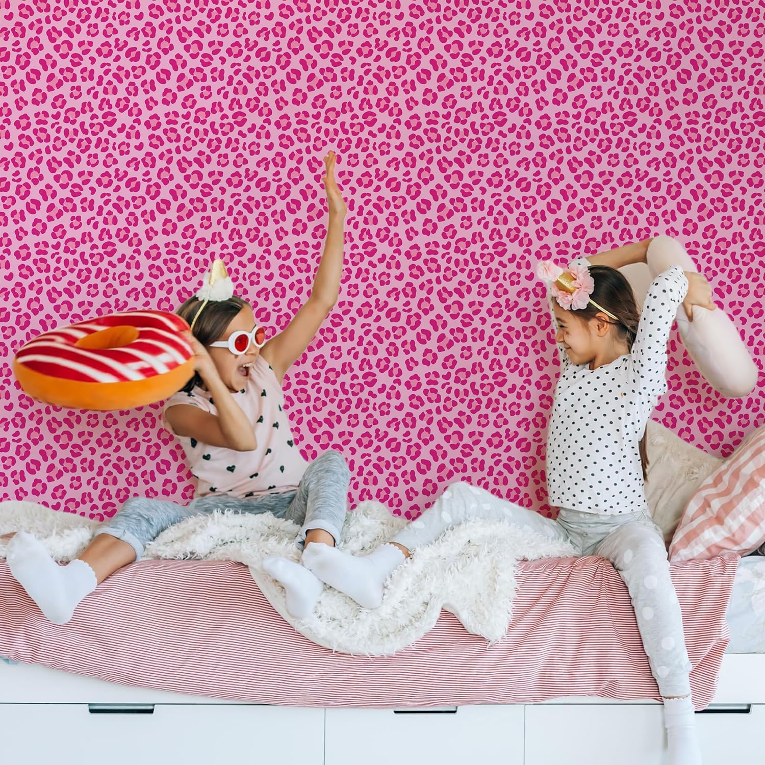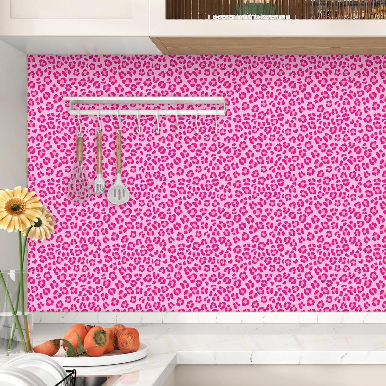 Pink Wallpaper Peel and Stick Modern Self-Adhesive Removable Contact Paper Pink Girls Room Wallpaper Art Murals Leopard Print Art Decor Vinyl Film for Women Bedroom Bathroom Kids Room Cabinet Sticker