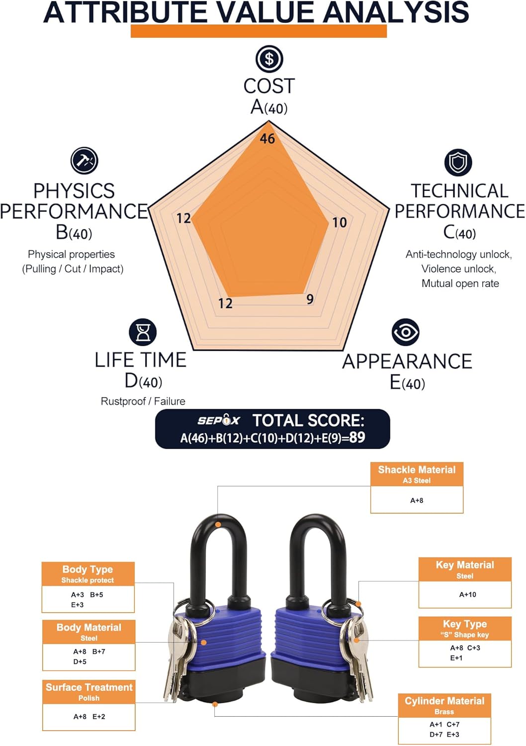Our SEPOX padlock each with 2 identical keys, all of which are key-alike, eliminating the need for multiple keys. The key features a comfortable, easy-to-hold handle for effortless unlocking. With 30-years reputation for producing locks for world-famous brands, SEPOX ensures unmatched quality and reliability.