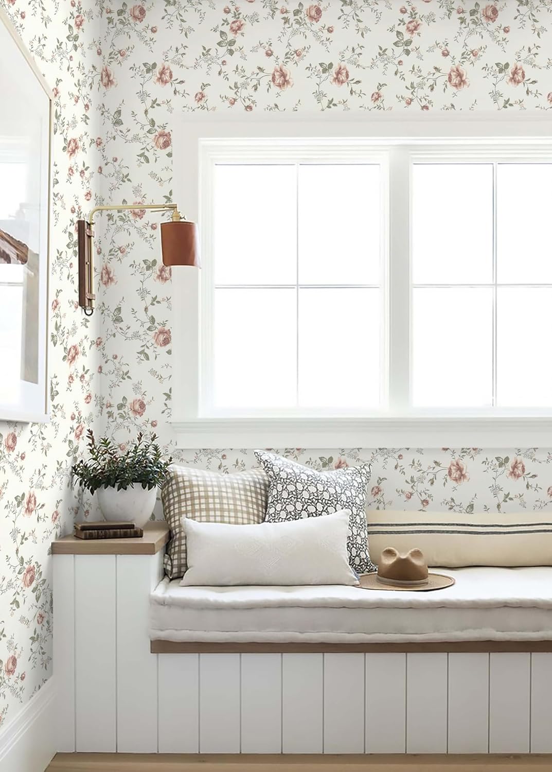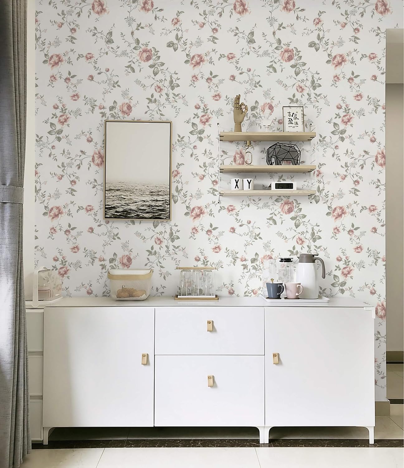 [ Design & Size ] The main color of this countryside floral wallpaper is beige with pink roses, each floral has a delicate texture and gloss, bringing you a warm and romantic home experience.