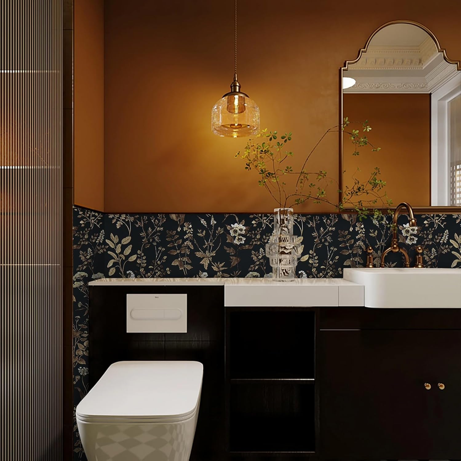 [EXCLUSIVE DESIGN]-Dimoon’s new Black & Gold wallpaper: featuring a dark floral theme with a variety of different delicate gold flowers painted on a black background, both vintage and modern. At the same time, Dimoon has upgraded the width of the wallpaper to 17.3in, which makes the wallpaper more convenient for splicing and installation