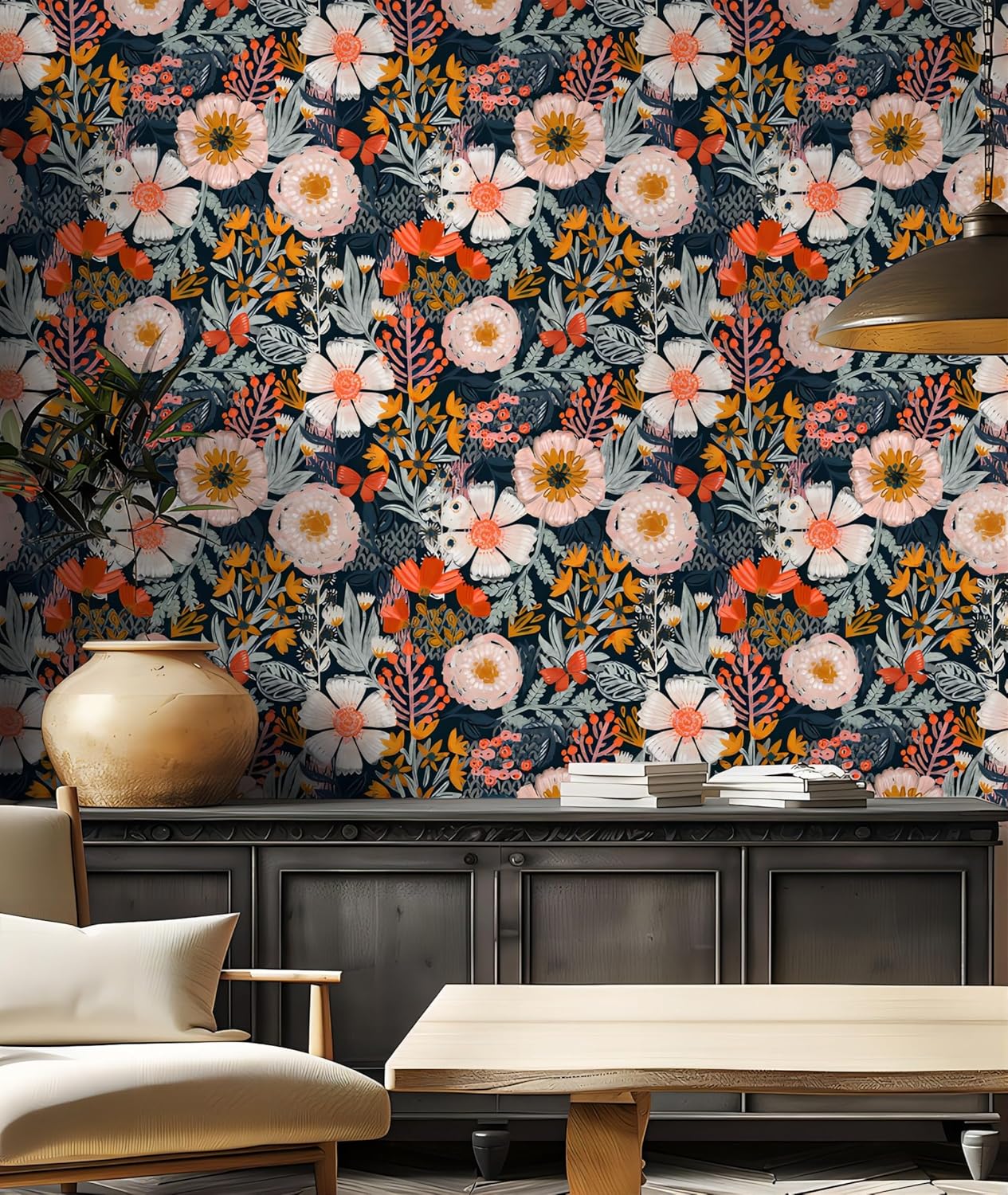 PATTERN & DESIGN: Pattern repeat is H17.5″ x W17.73″ (H44.5cm x W44cm), straight match. Firstly to find the correct pattern repeat and then just directly match without overlap, it’s very easy for beginner who never did peel and stick wallpaper before. The peel and stick wallpaper features an abstract pattern of flowers and plants. Whether you’re looking to add a pop of color or create a cozy and inviting atmosphere, a boho ethnic style wallpaper with large floral is a great choice.