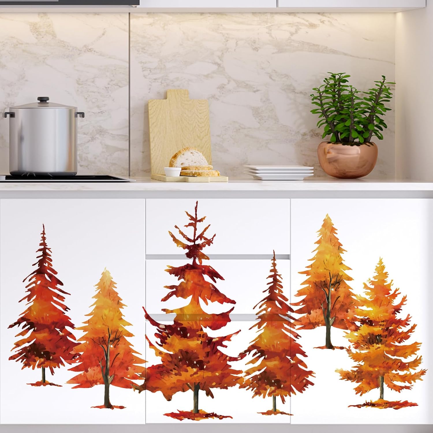 3 sheets wall stickers, designed with burnt orange maple trees, exquisite and eye-catching, proper size to meet your needs for decoration. Bring your room with a breath of beautiful and fun.