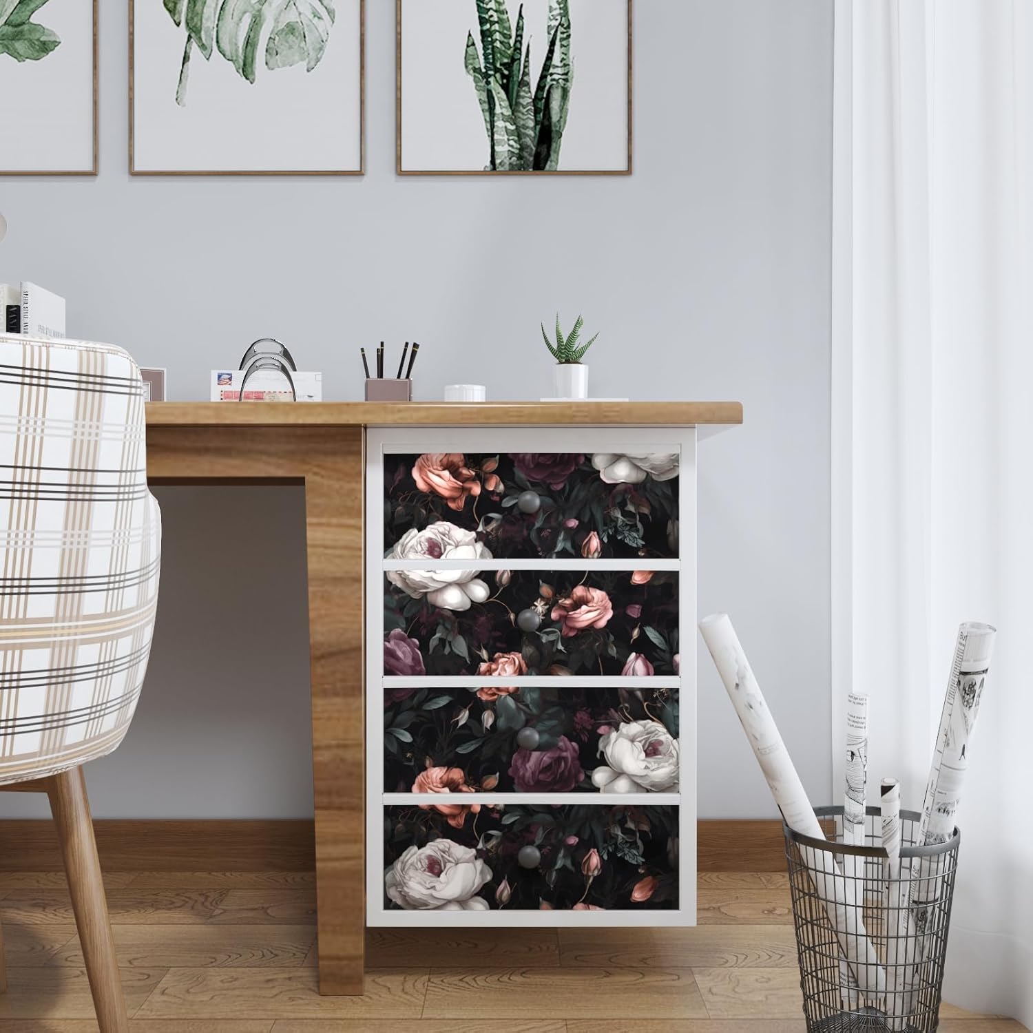Quick & Easy Operation: Floral wallpaper just peel and stick, no glue or tape required. The rose wallpaper has a grid on the back so you can easily cut it to the size you need. We sugguest patiently and slowly peel off the contact paper from the edge, sticking it while tearing, please don’t remove too much at once. Paste vertically form top to bottom, preferably smoothing the wallpaper with a scraper or hard card.