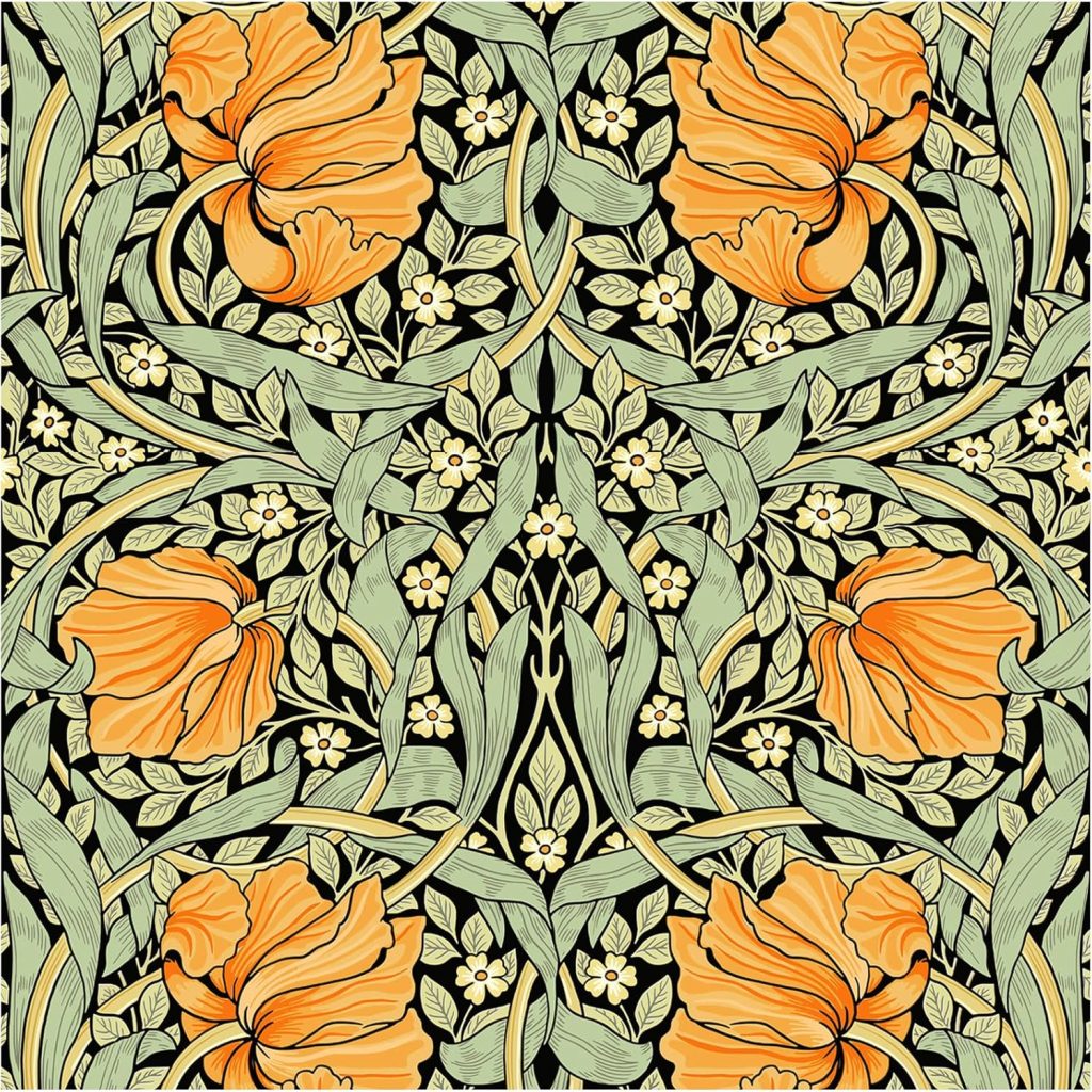 Vintage Wallpaper Peel and Stick Floral Wall Paper Removable Waterproof Green/Black/Yellow Contact Paper for Bedroom, Bathroom, Home Wall 17.3″ x 118″