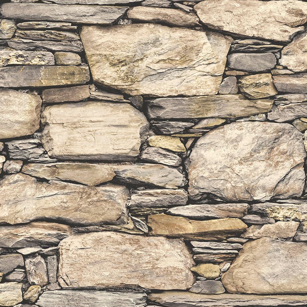 This peel and stick wallpaper gives the look of a stone wall. The chic design