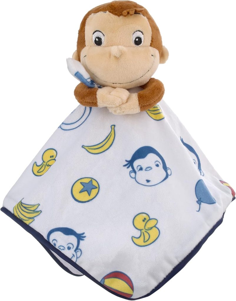Curious George White, Blue, Red, Yellow and Brown Plush Security Baby Blanket 100% PolyesterComfort baby