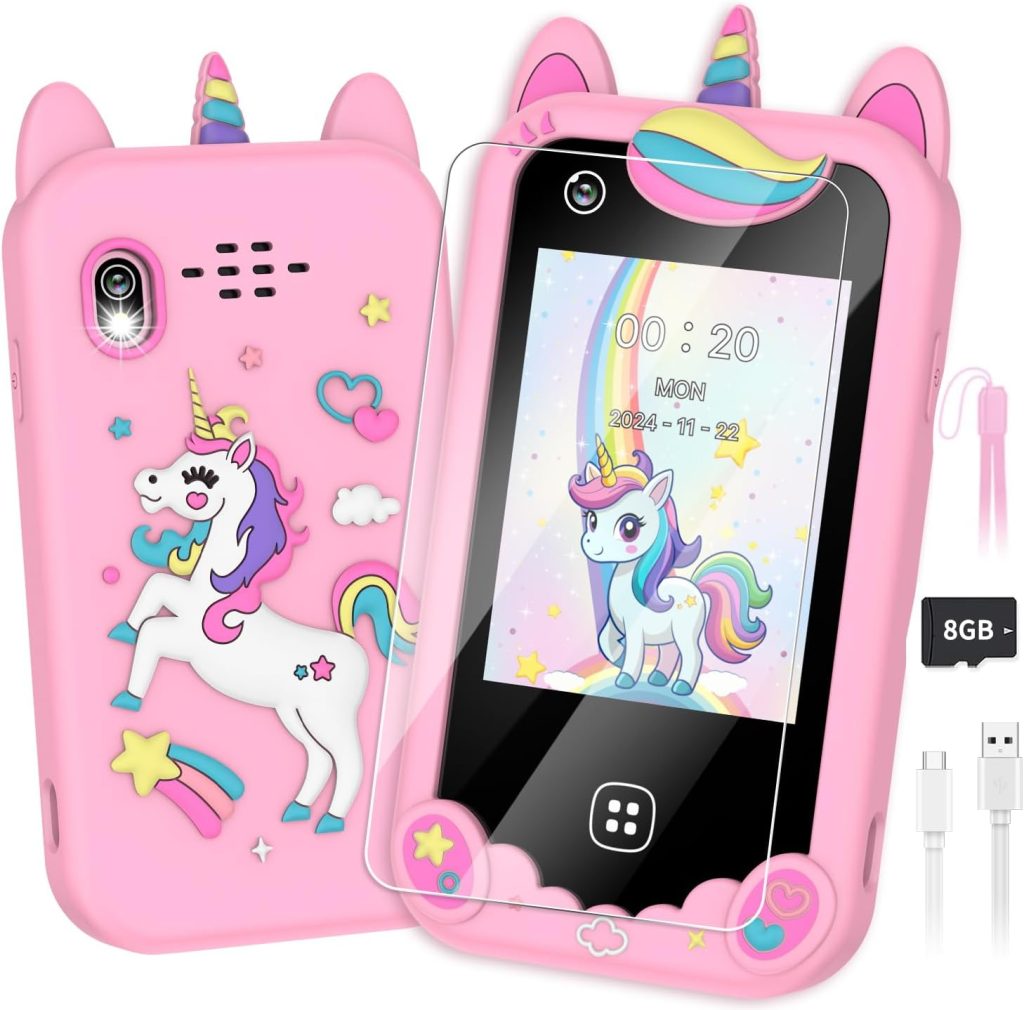 Kids Smart Phone for Girls Ages 3-8, Toy Cell Phone for Kids, Christmas Birthday Gifts for Girls, Toddler Learning Play Toy Phone with Touchscreen, Dual Camera, Game, Music, Story, 8GB SD Card