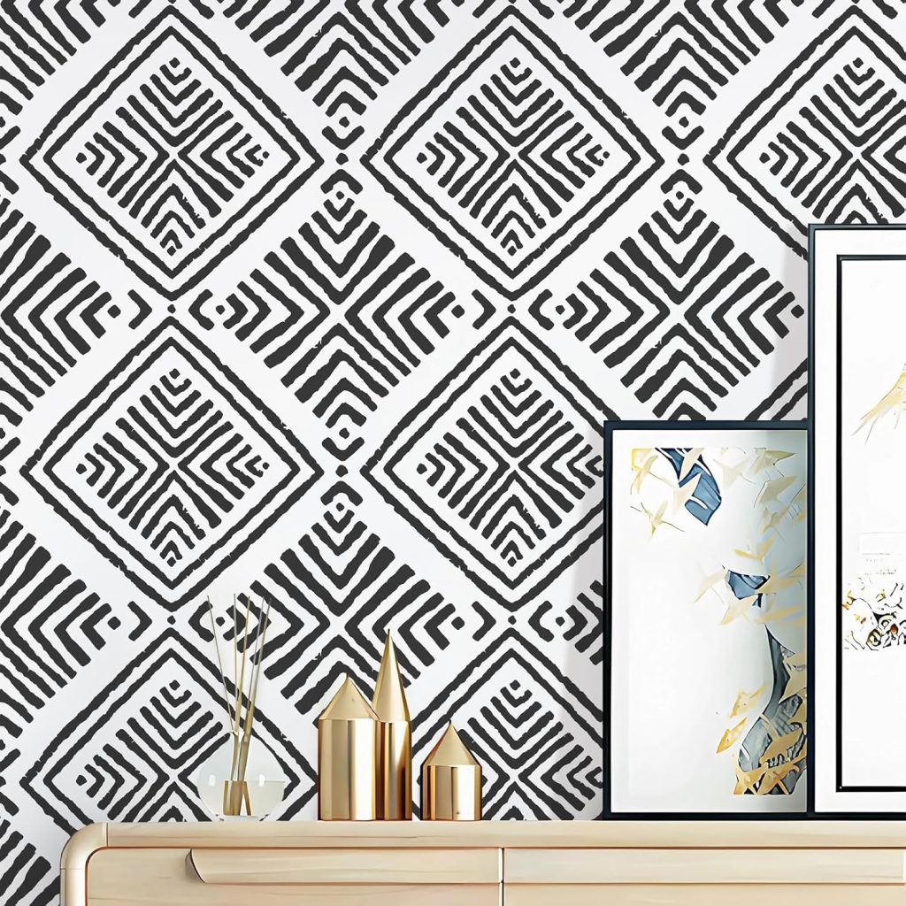 Product description 【Size and Materials】:Black and white peel and stick wallpaper, each roll is 197″