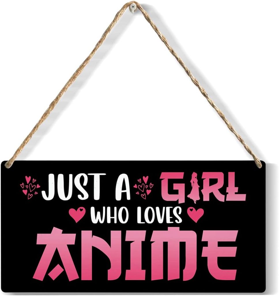 Funny Just a Girl Who Loves Anime Wood Sign Rustic Anime Lovers Wooden Hanging Plaque for Home Living Room Girl Bedroom Wall Art Decoration 6 x 12 Inches Present