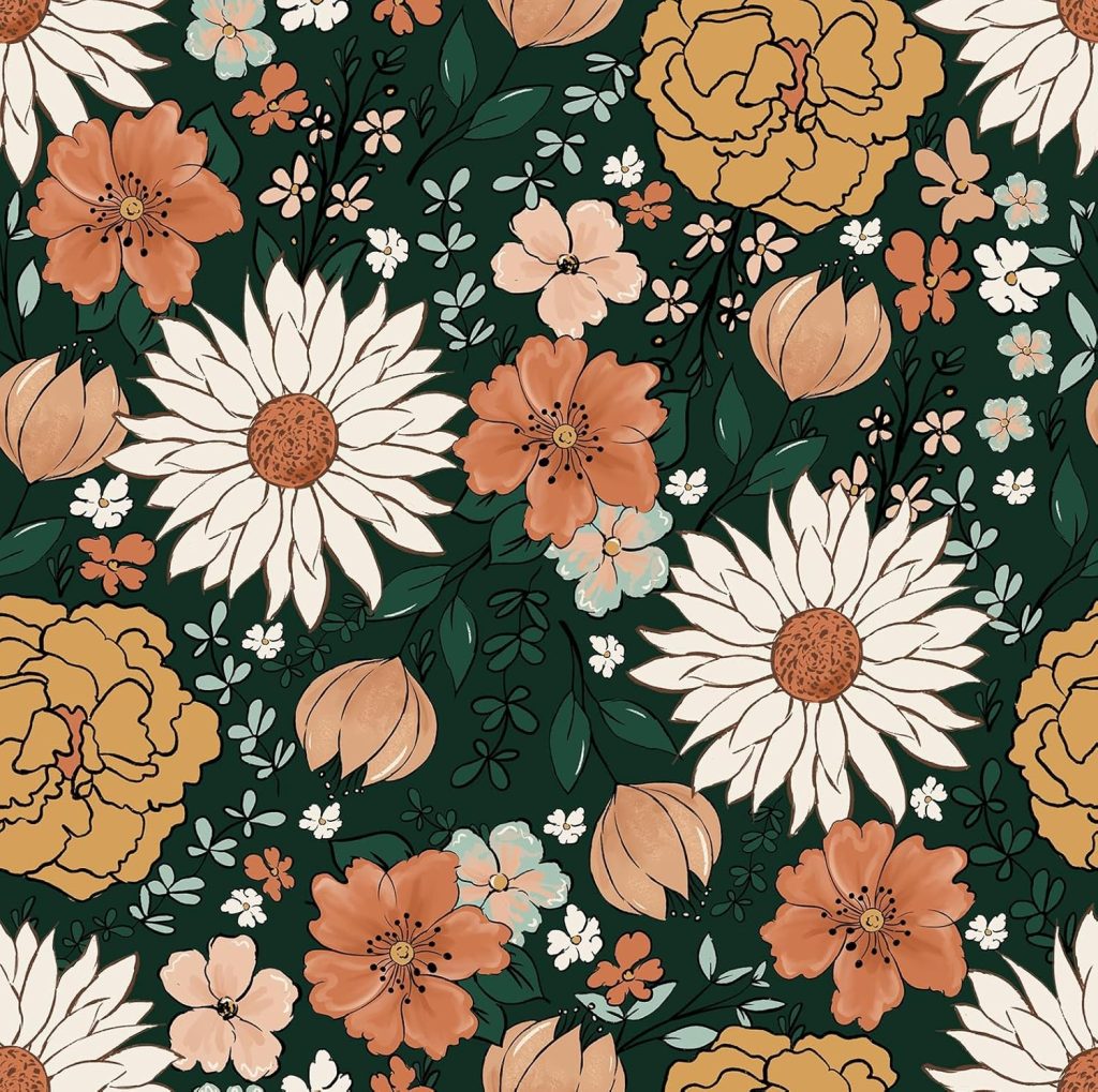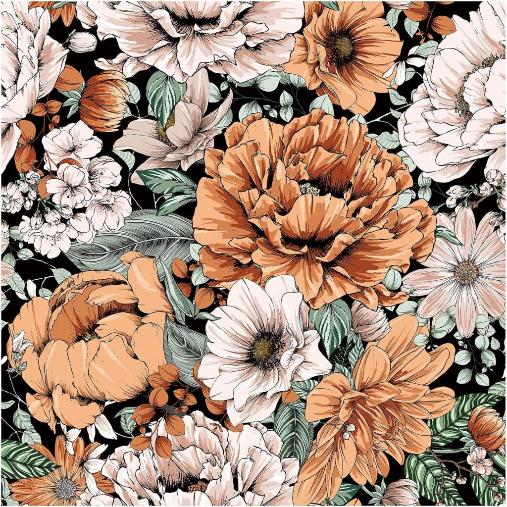 Boho Flowers Brown Leaf Plants Botanical Peel and Stick Wallpaper Self Adhesive Removable Easy Peel Off Stick on Wall Paper for Bedroom Cabinet Renter Friendly
